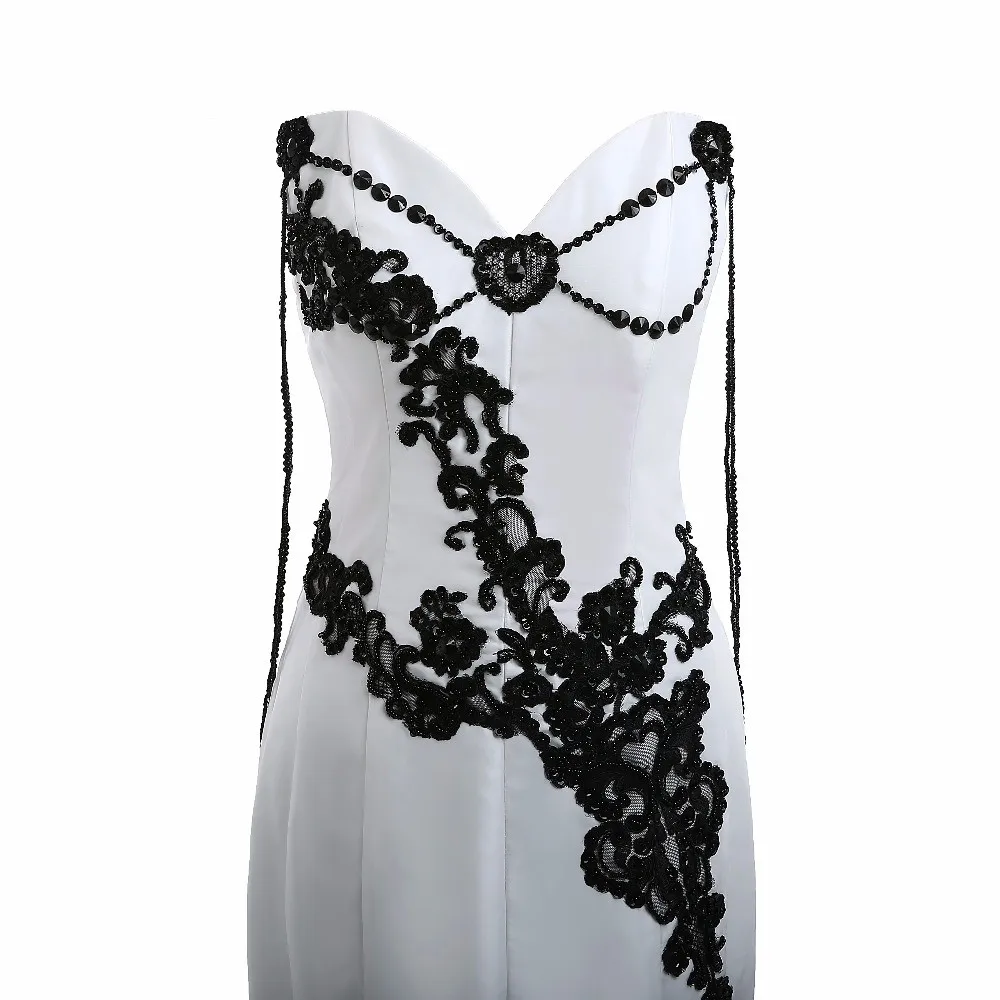 Настоящие фотографии Длинное элегантное официальное атласное выпускное вечернее платье без бретелек, с вышивкой и вырезом-сердце