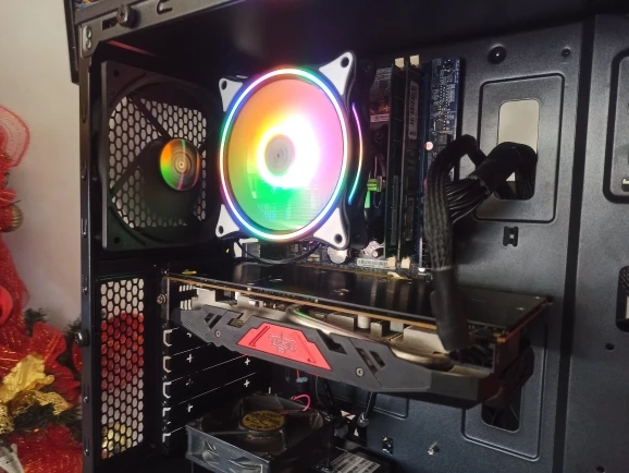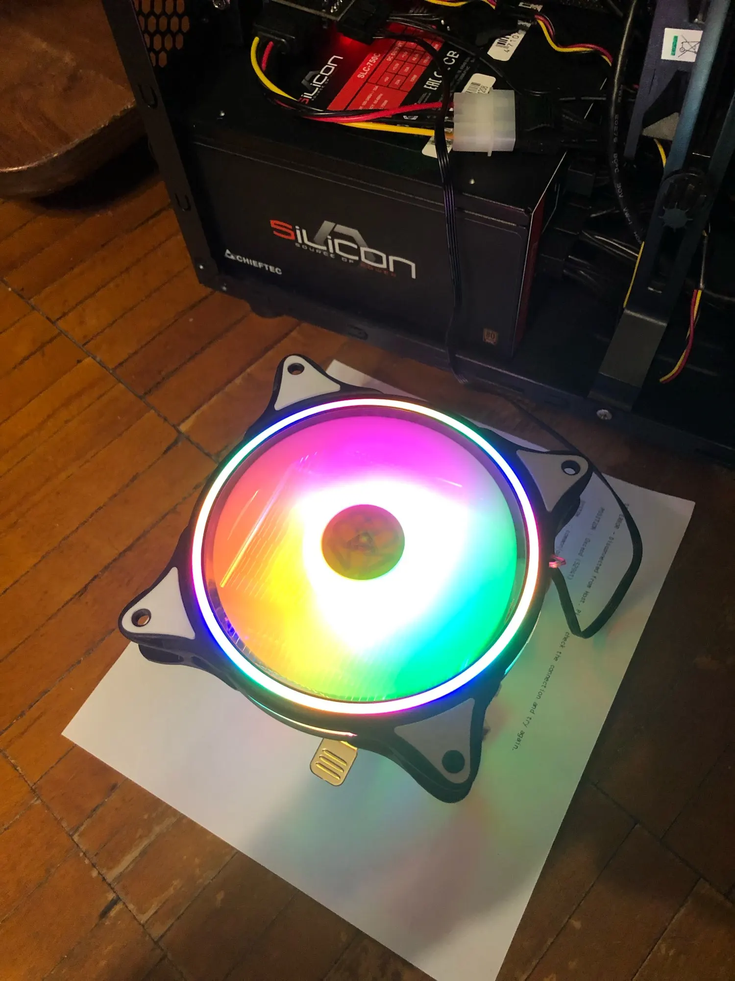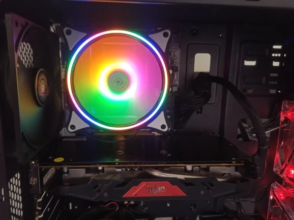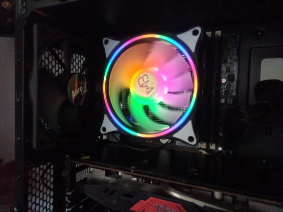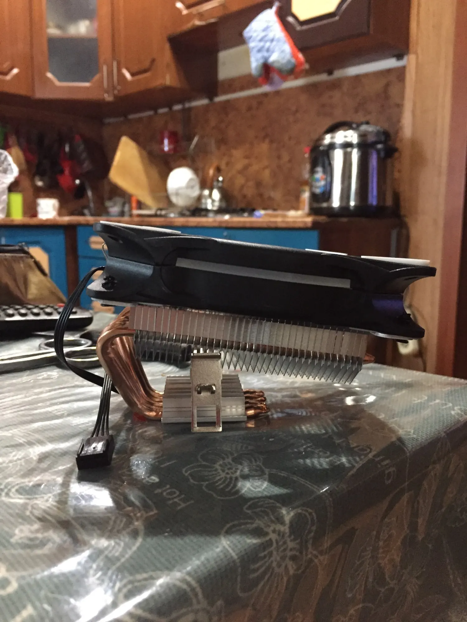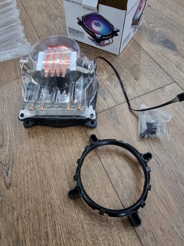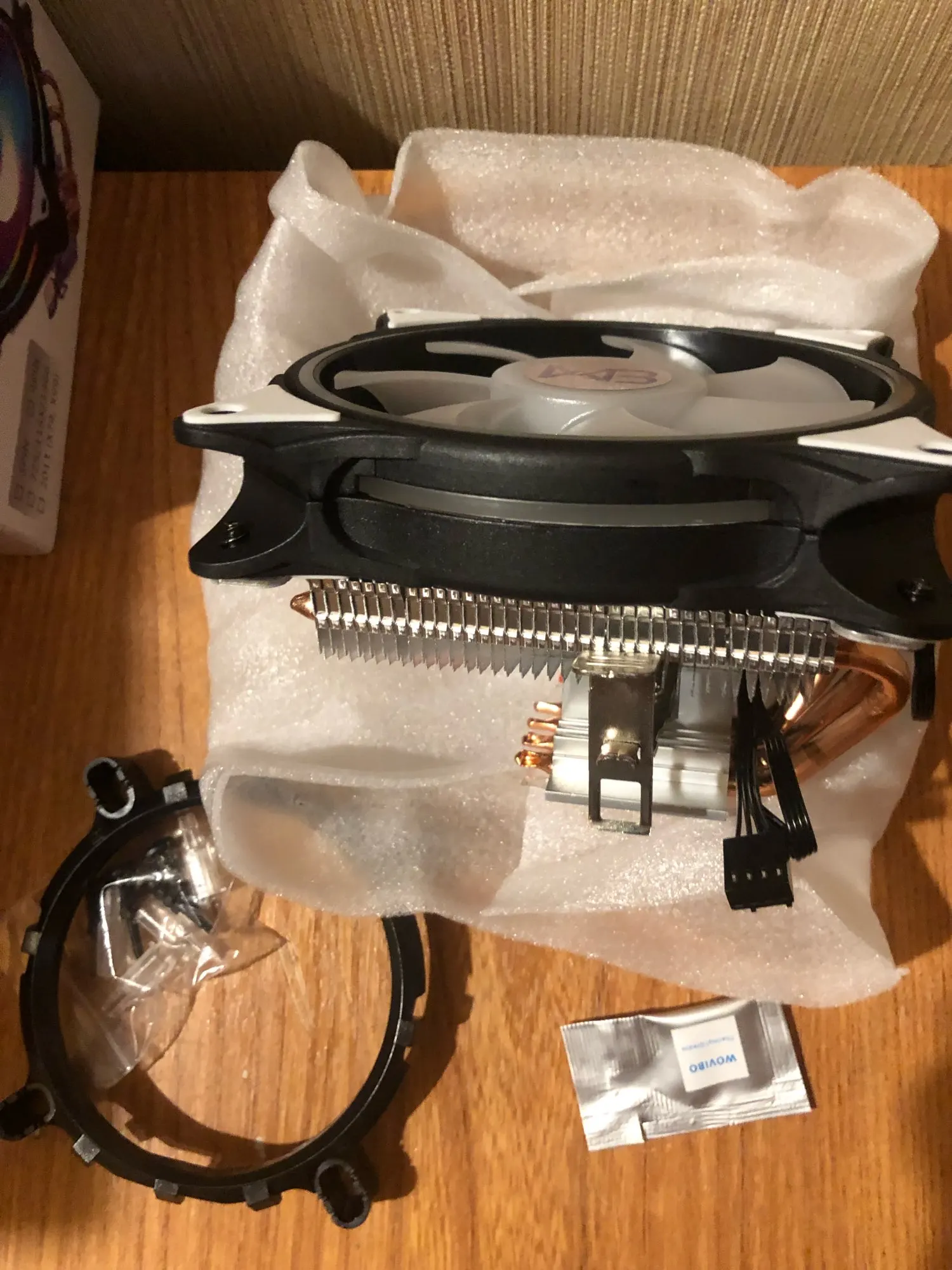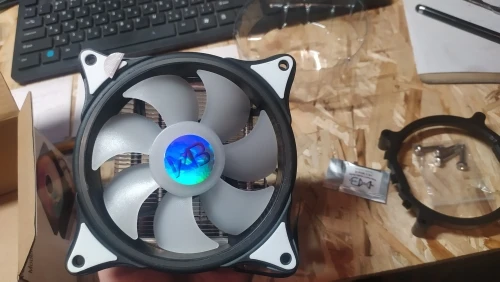 Доставка из РФ быстрая. Кулер вроде норм. Подсветка не очень, просто кусок RGB ленты приклеенный к внутренней окружности вентилятора. Сам вентилятор 120 мм с креплением от 92мм. Площадь рассеивания небольшая, но для охлаждения любого не разогнанного проца хватит.