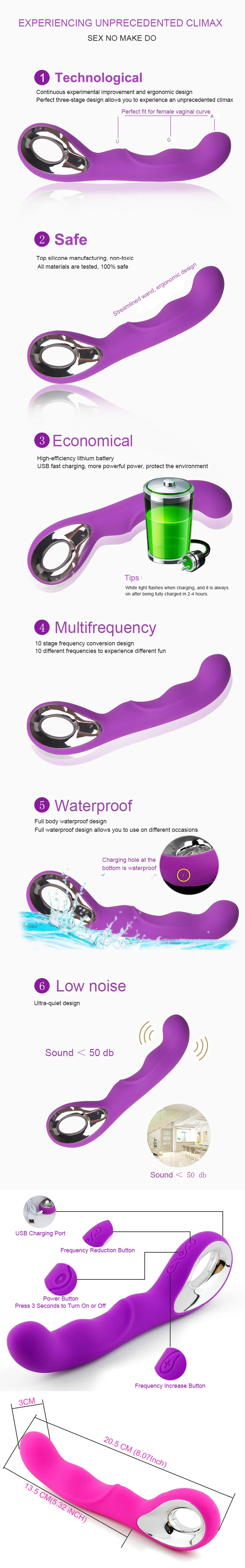 Перезаряжаемая силиконовая Вибрирующая палочка, 10-частотный вибратор, массаж точки G, Трехточечная стимуляция, женская мастурбация, секс-игрушки