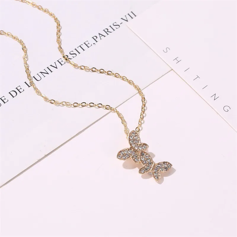 DoreenBeads модные циркониевые Подвески с двумя бабочками для женщин, аксессуары, Золотая цепочка, серия бабочек, ювелирные изделия