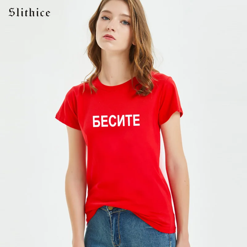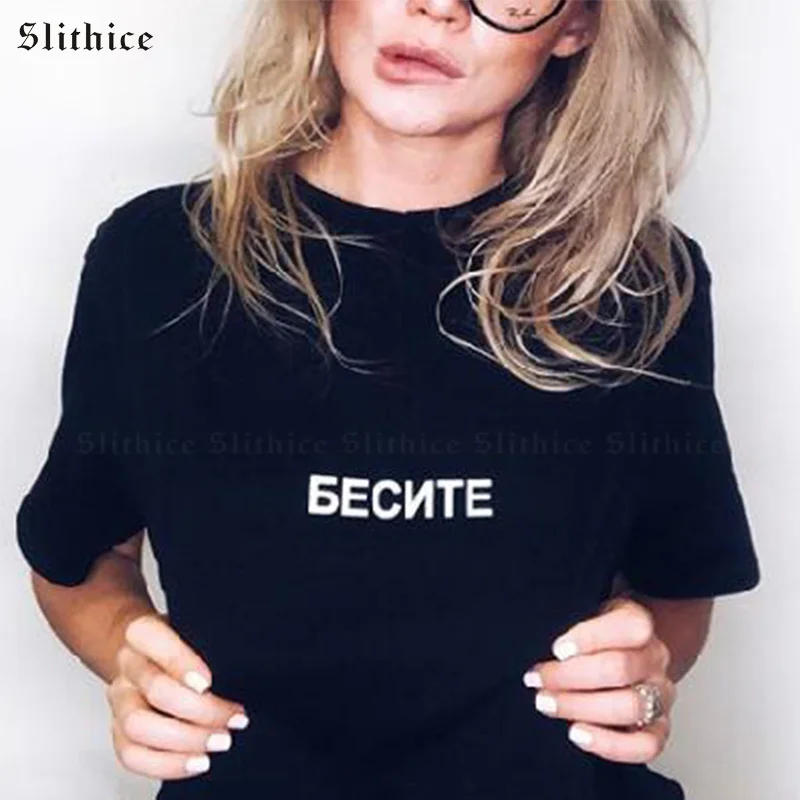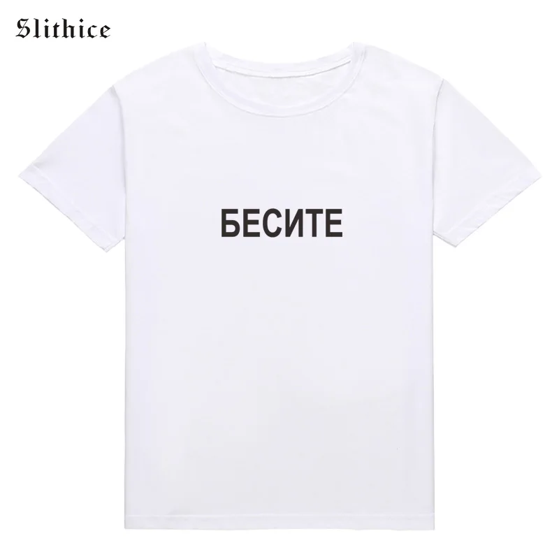 Slithice летняя новая женская футболка с надписью в русском стиле, ...