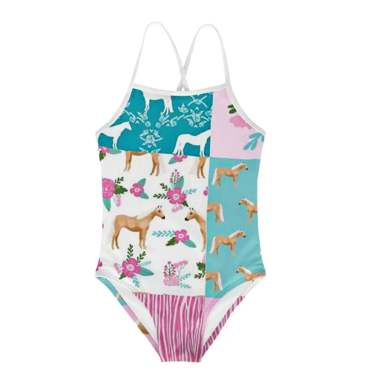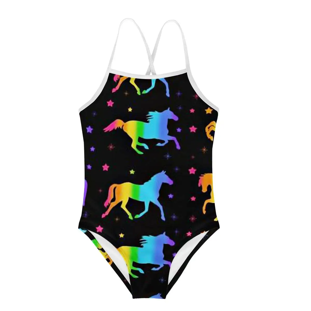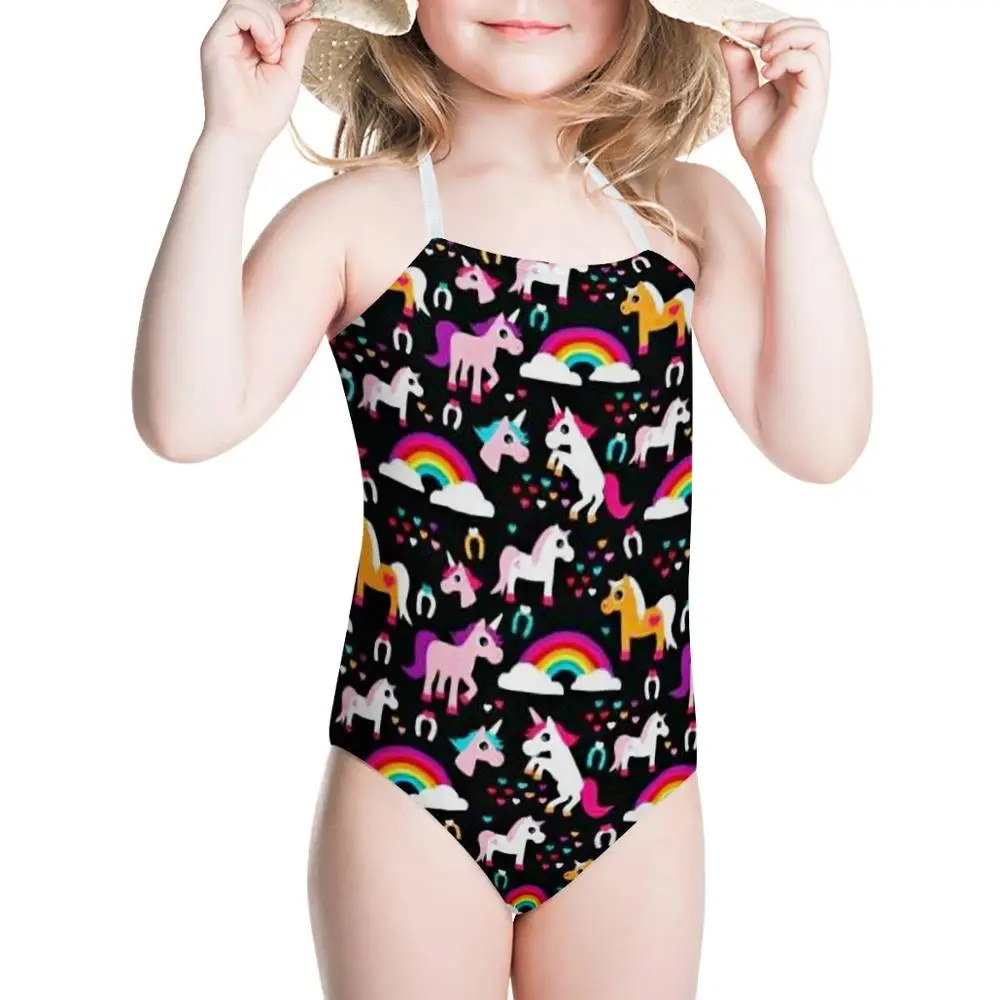 Детский слитный купальник HYCOOL, с изображением радуги, пони, единорога, лошади, для девочек-подростков