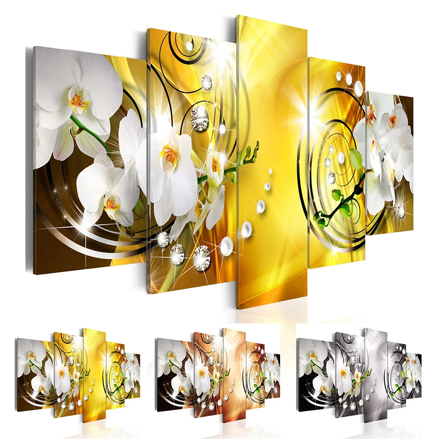 5 шт.компл., алмазная жемчужина, Орхидея, цветы, украшение на стену, абстрактные современные цветы, холст, живопись, подарки для любви (без рамки)