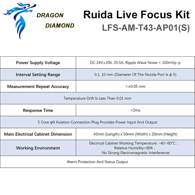 Дракон алмаз Ruida металлическая режущая живая фокусировка система усилитель и соединительная линия LFS-AM-T43-AP01(S) для лазерного гравера