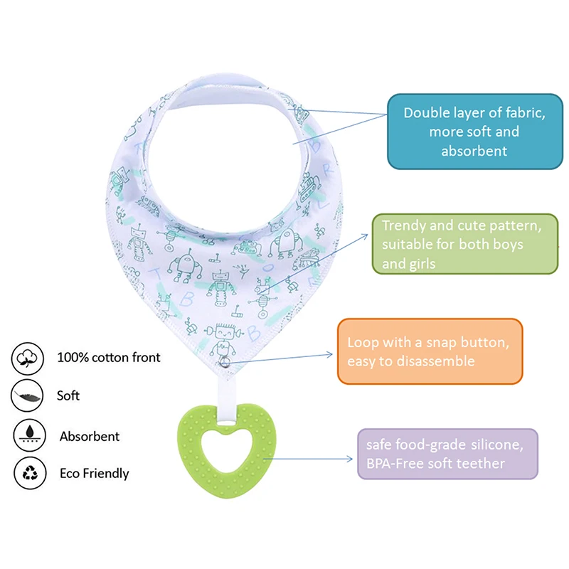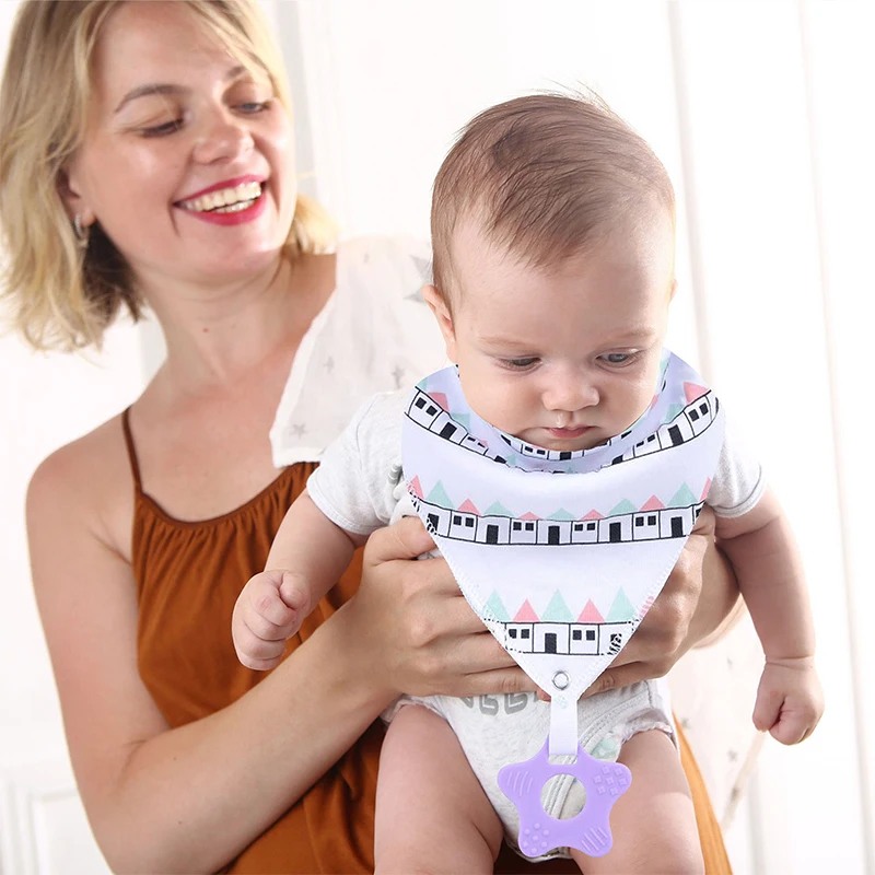 Детские слюнявчики-Бандана с игрушками для прорезывания зубов, супер-впитывающие детские слюнявчики из 100% органического хлопка для прорезывания зубов и слюнятия
