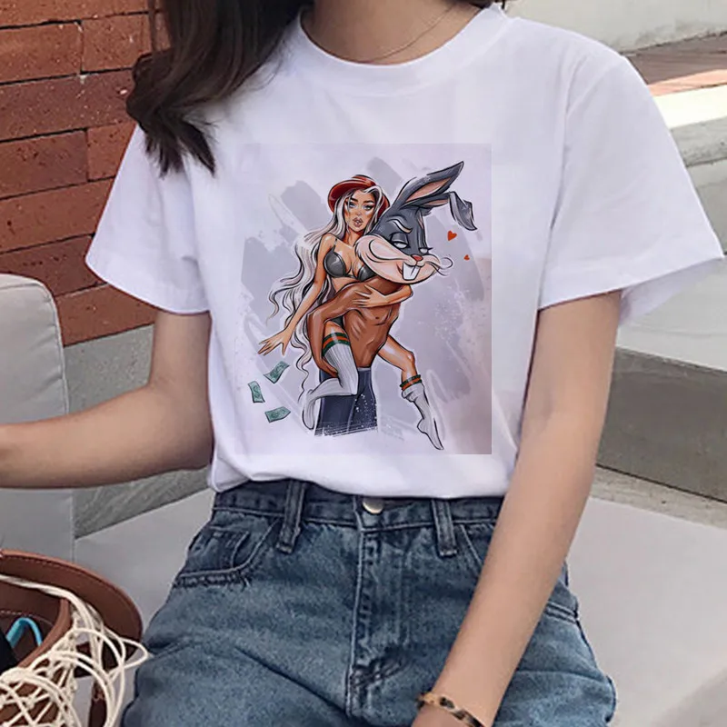 Новинка 2021, летние модные женские футболки с принтом кроликов Yug...