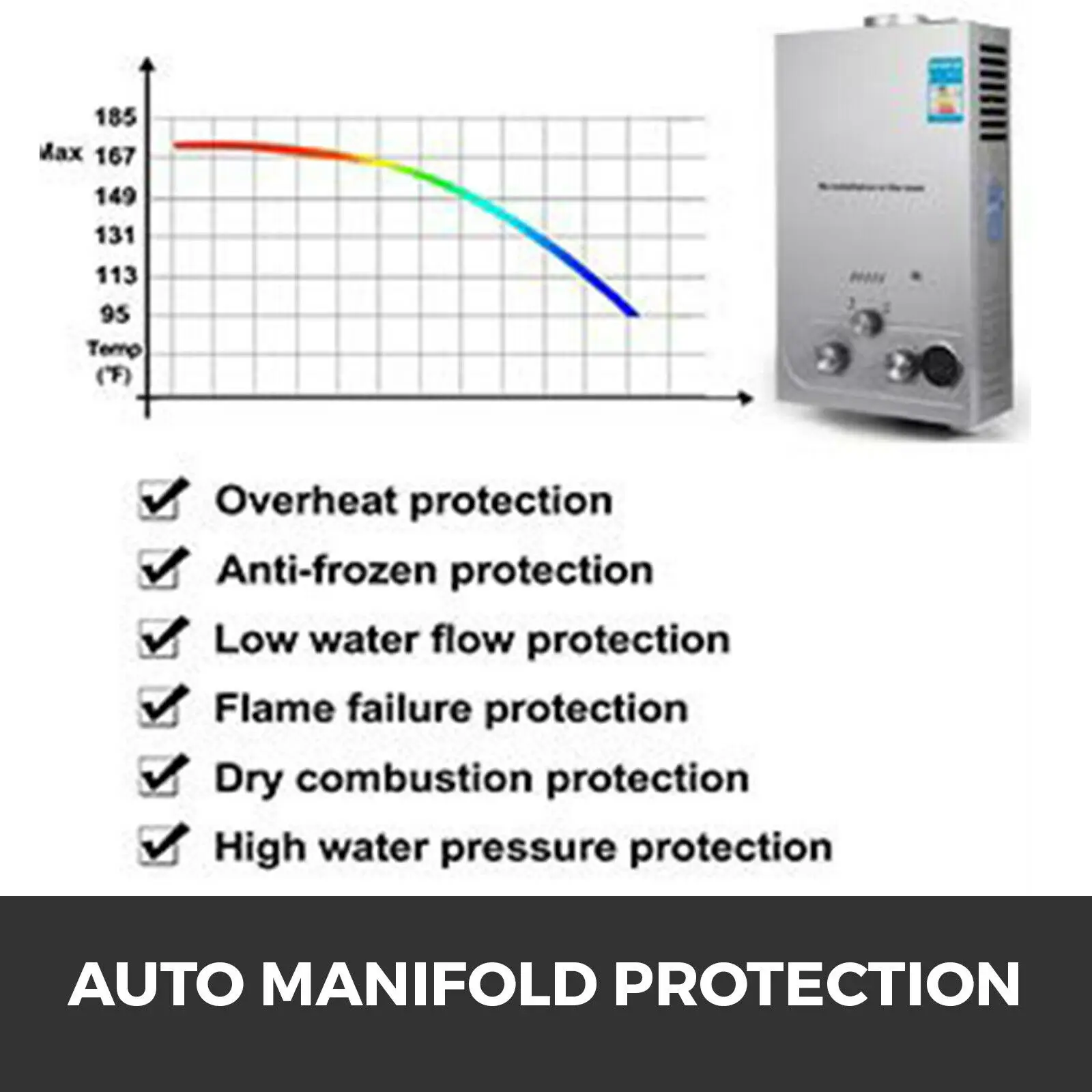 Особенности и деталиВысокое качество-Водонагреватель без резервуара; Подача газа: LPG (жидкий нефтяной газ); Мощность: 36 кВт; Выход горячей воды: 18 л/мин (4.8GPM); Антикоррозийный чехол из нержавеющей стали, высокотемпературные медные устройства для воды обеспечивают длительное использование и долговечность.Легкое управление-Четкий светодиодный дисплей текущей температуры воды, поверните регулятор подачи газа и выхода воды, чтобы легко регулировать температуру горячей воды. Также предоставляем летний/Зимний режим, чтобы выбрать для экономии энергии.Многоуровневая защита-Заботьтесь о безопасности при использовании, таким образом, чтобы принять несколько способов защиты, таких как: защита более 75, защита от низкого потока воды и т. д. Также можно начать с низкого давления воды, поставляется с набором для душа в подарок.Настенный дизайн-Это светильник-вес, портативный и безрезервуарный для установки на стене для экономии пространства. Медь Стандартный G1/2 "шланг разъемы, 4,5" дыма выхлопной трубы выход (не входит в комплект).Переключаемое применение-CE прошел продукт, быстро нагревается, идеально подходит для душа в ванной, мытья рук или душа для домашних животных, для очистки раковины. Обеспечивает постоянную горячую воду, особенно в зимние или холодные места. Наслаждайтесь уютным душа в любое время.