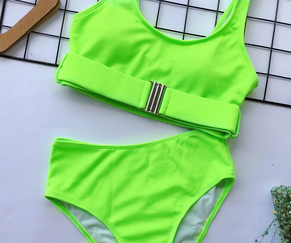 Купальники с завышенной талией, новые флуоресцентные зеленые бикини...