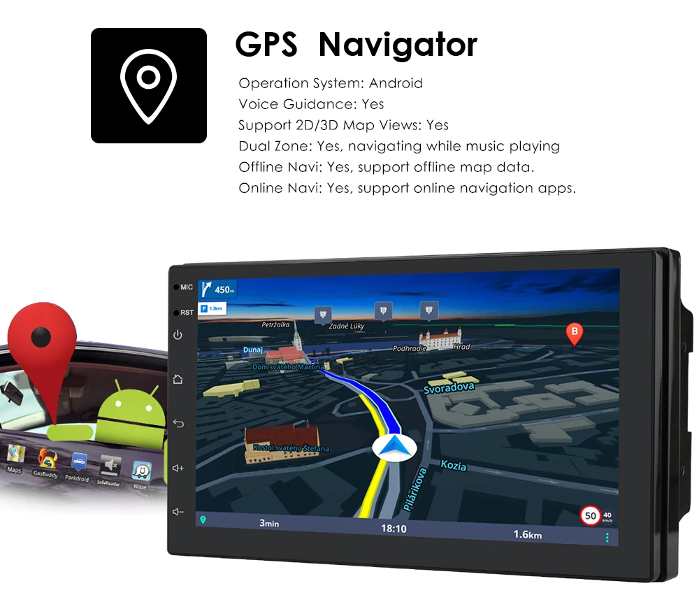 Автомобильный мультимедийный MP5-плеер 2.5D, плеер на Android, с GPS, Wi-Fi, 7-дюймовым сенсорным экраном, Bluetooth, FM-радио, типоразмер 2 Din
