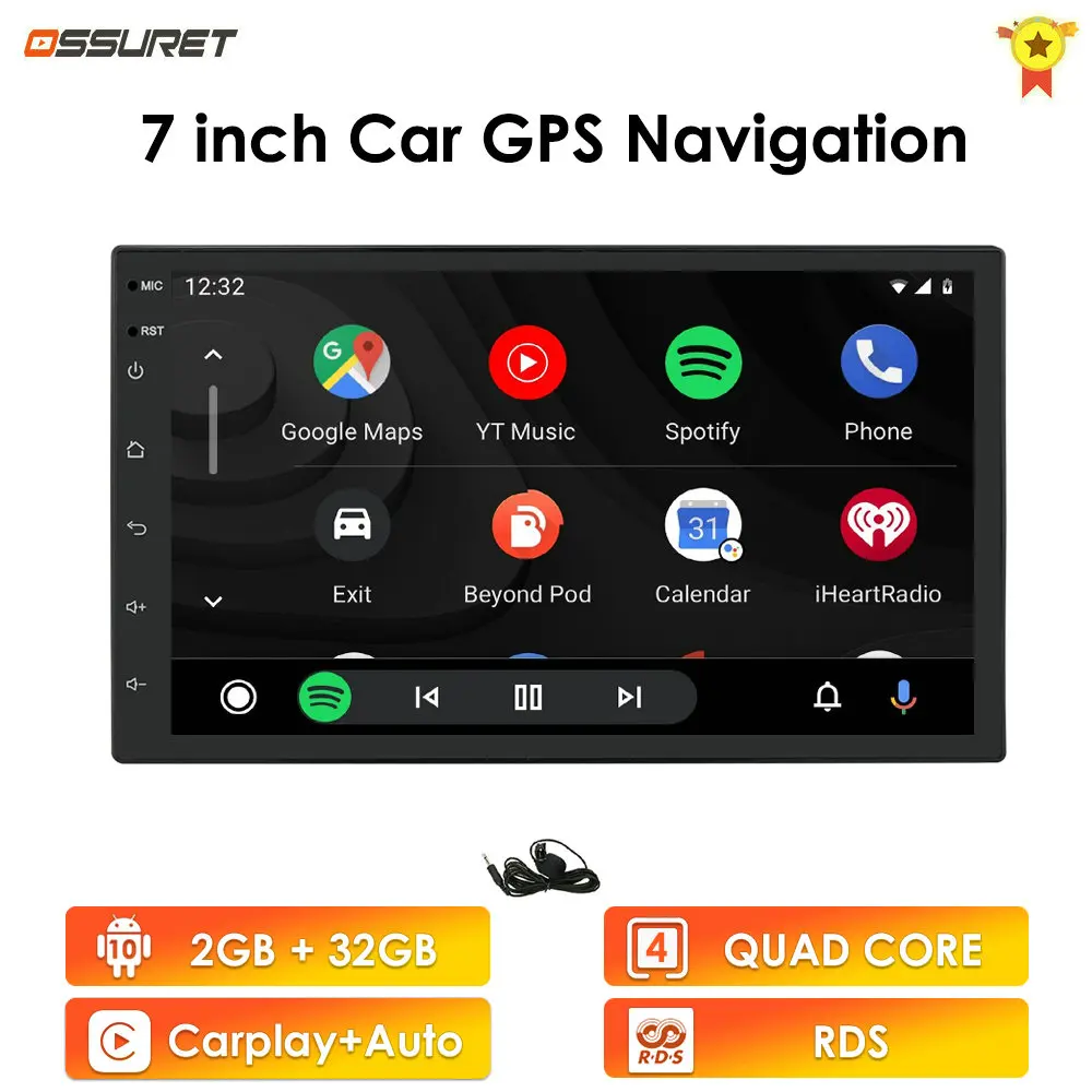 Автомагнитола 2 DIN, 4 ядра, Android, 7 дюймов, GPS, Wi-Fi, RDS, USB