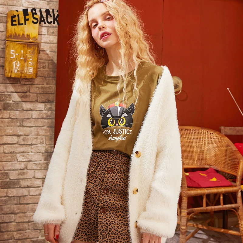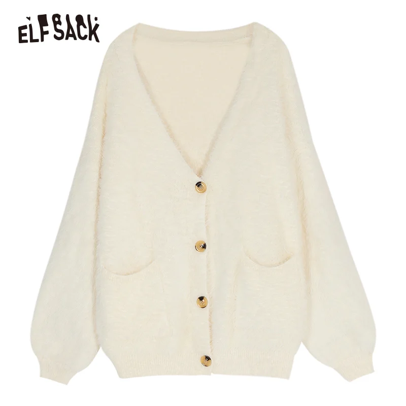 Женский однотонный вязаный кардиган ELFSACK, однотонный минималистичный свитер с одной пуговицей в Корейском стиле, весна 2020