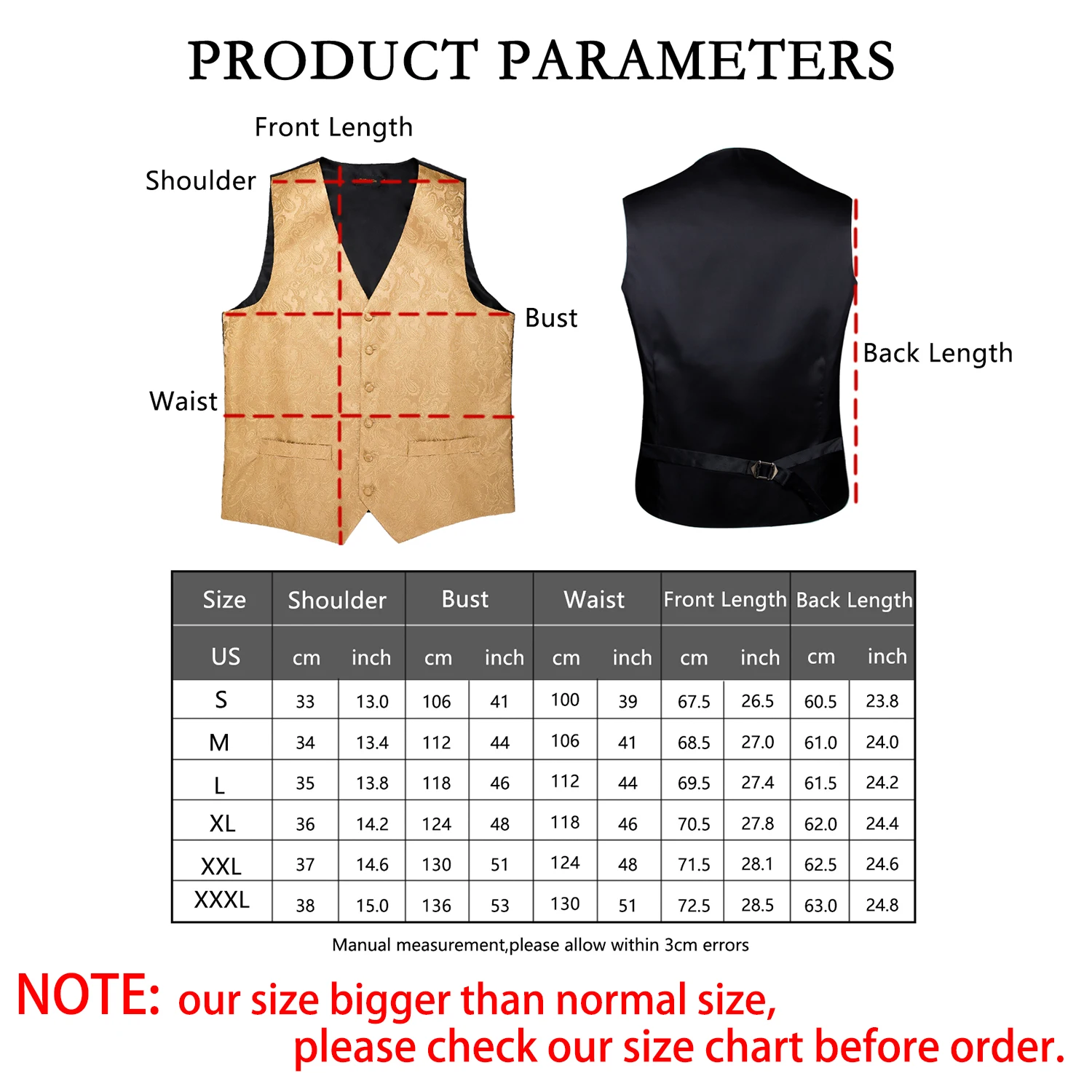Примечание:Пожалуйста, выберите размер, руководствуясь нашей таблицей размеров, просто хотите, чтобы вы получили подходящий жилет.