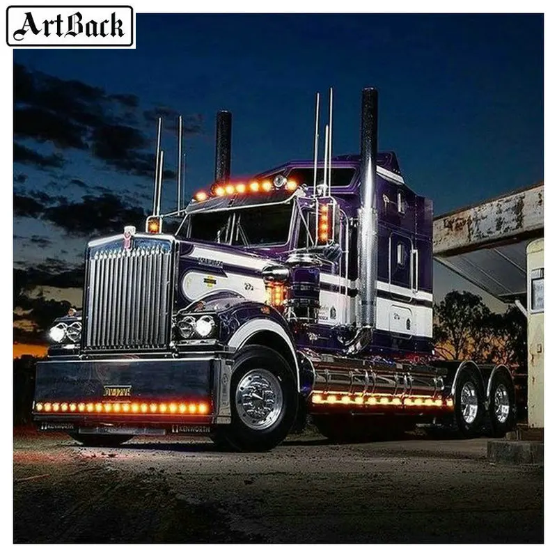 Алмазная 5d картина сделай сам, мозаика из страз с изображением грузовика, ночного пейзажа, иконы, полностью квадратные и круглые наклейки, 50 х50 см