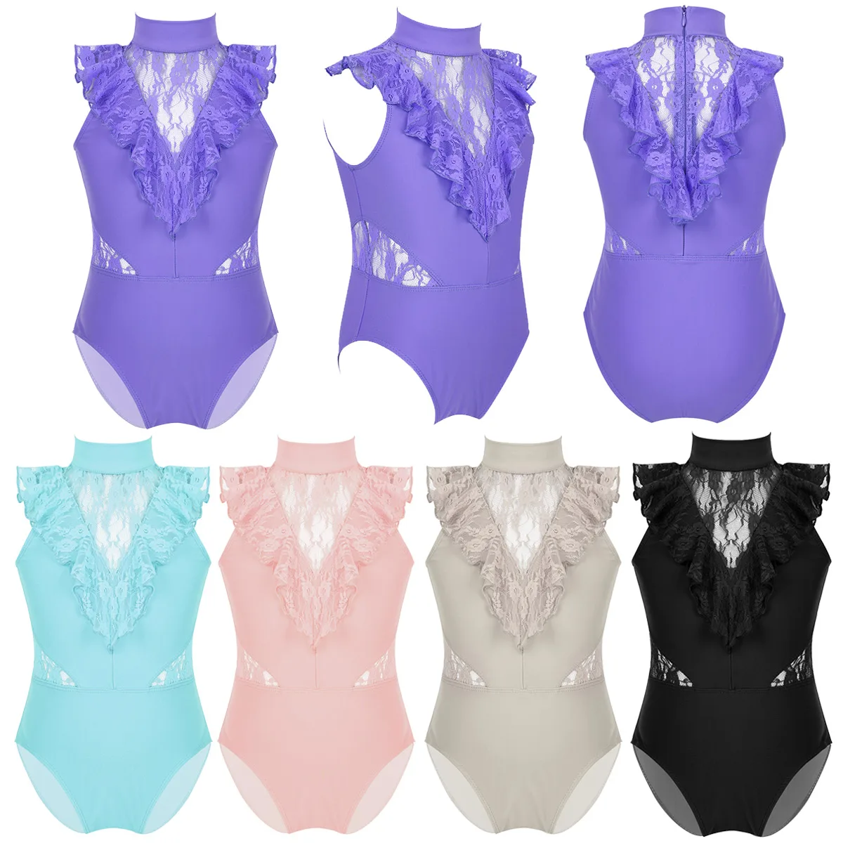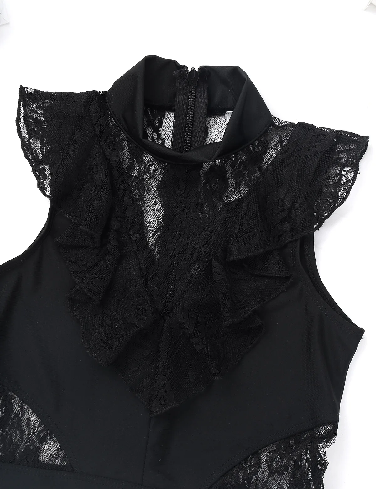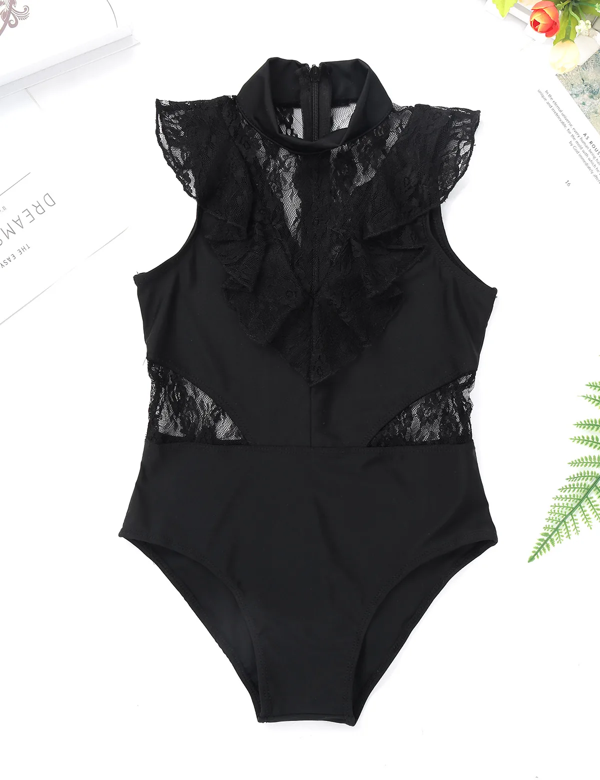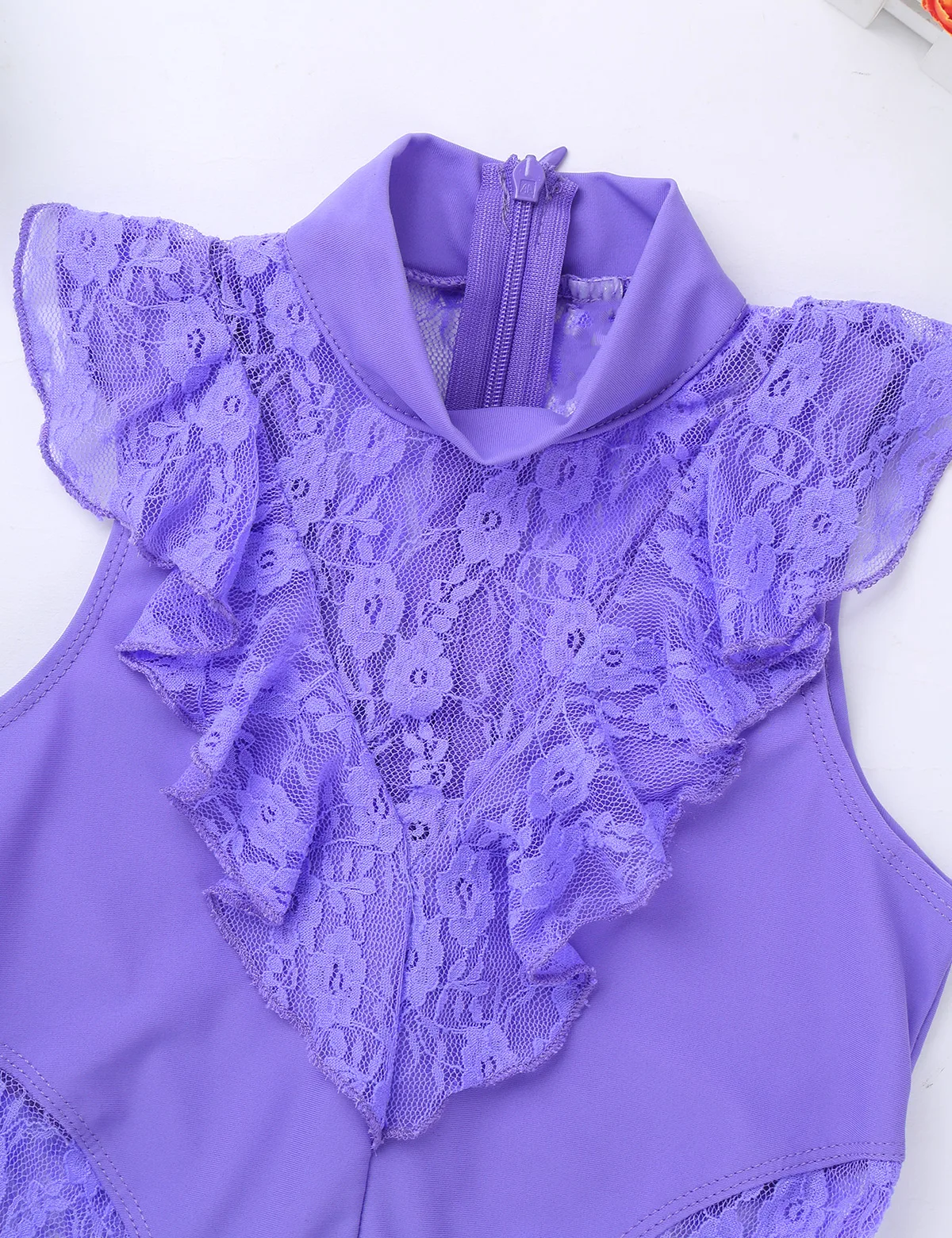 Балетное трико для девочек, без рукавов, с оборками и кружевом, с разрезом сзади, на молнии, балетное танцевальное гимнастическое трико, комбинезон, балетная пачка