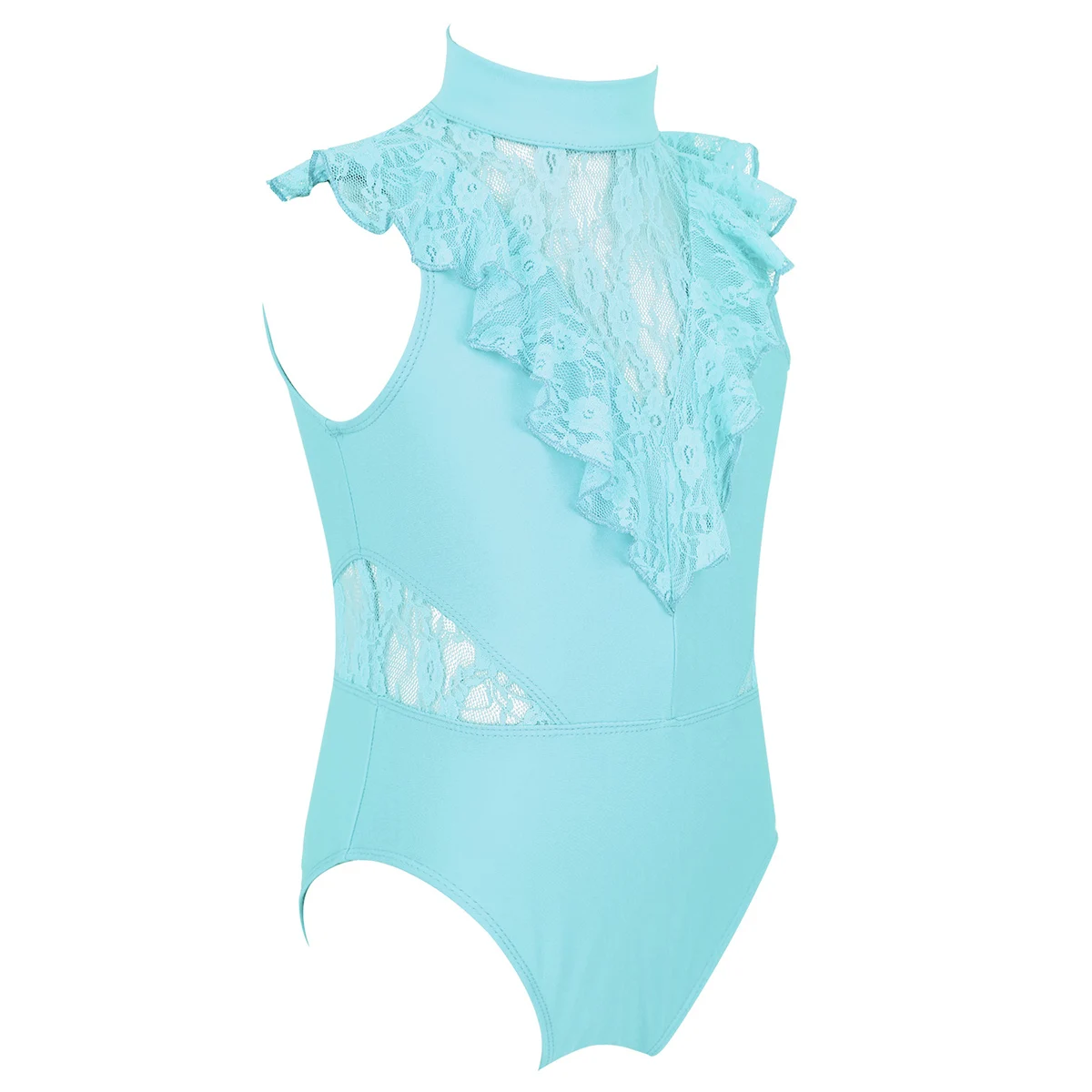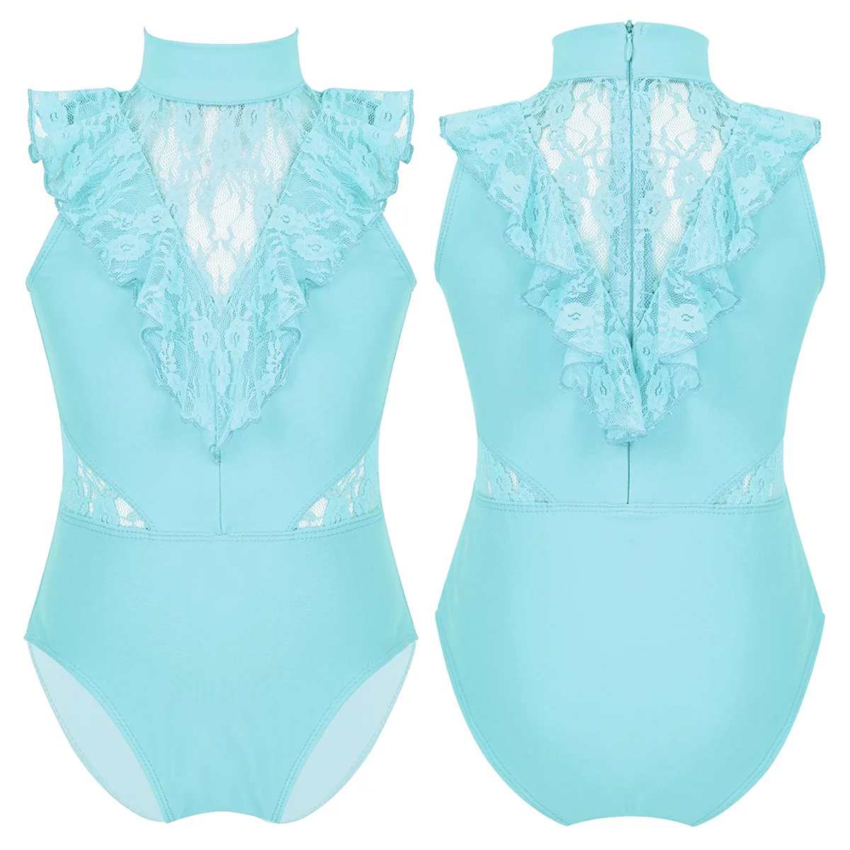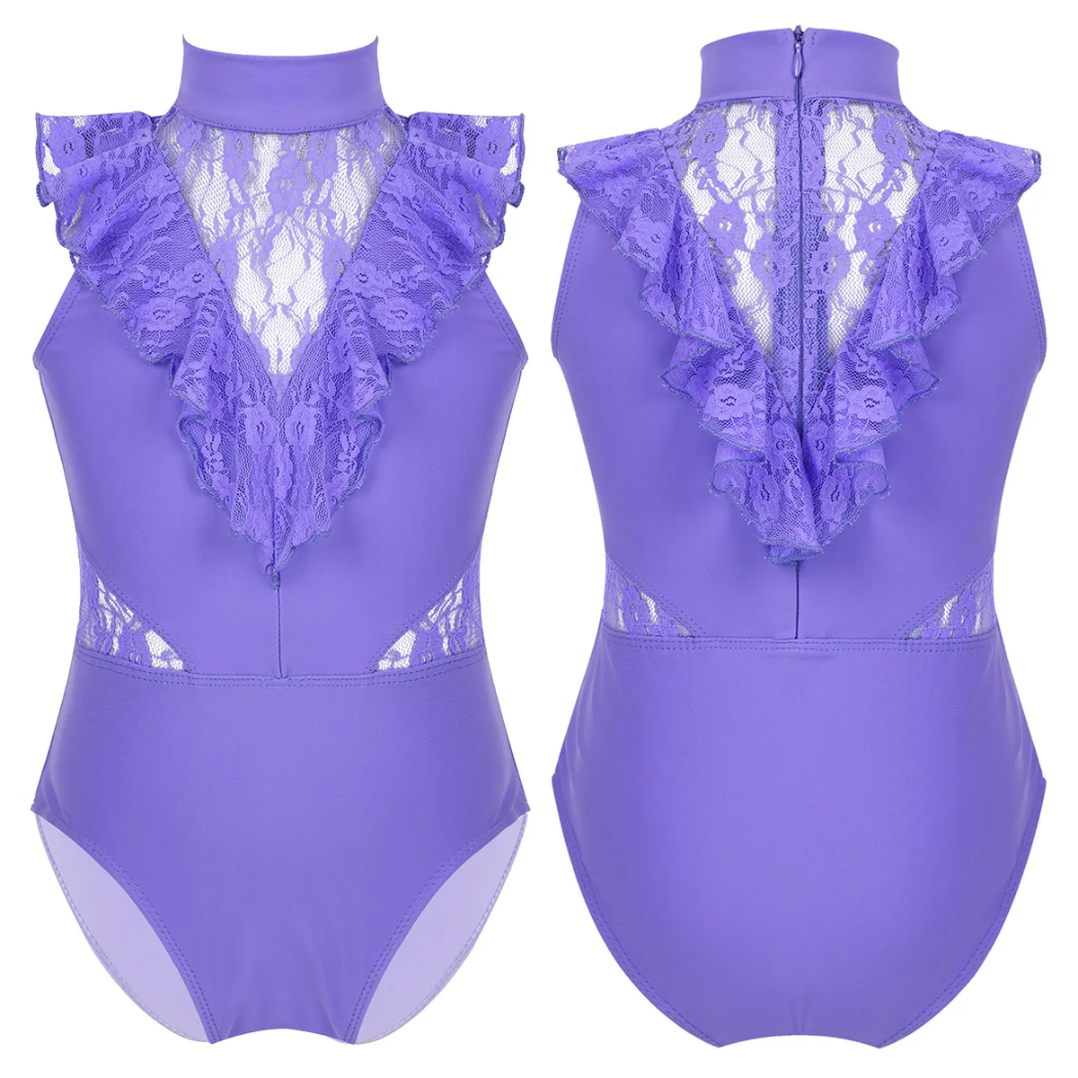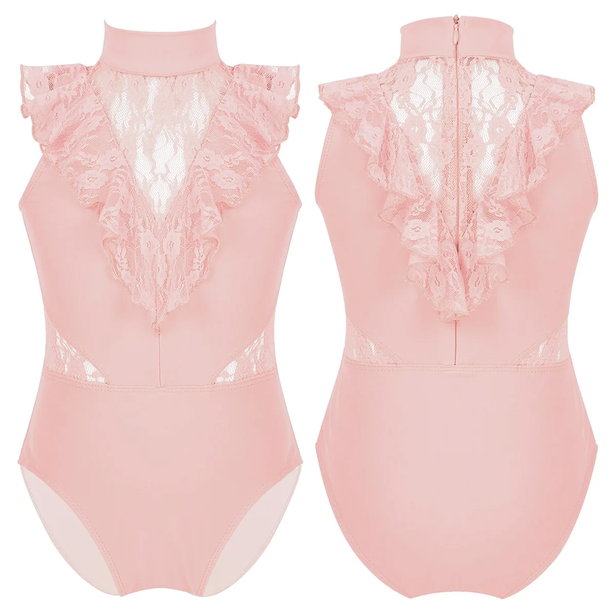 Балетное трико для девочек, без рукавов, с оборками и кружевом, с разрезом сзади, на молнии, балетное танцевальное гимнастическое трико, комбинезон, балетная пачка
