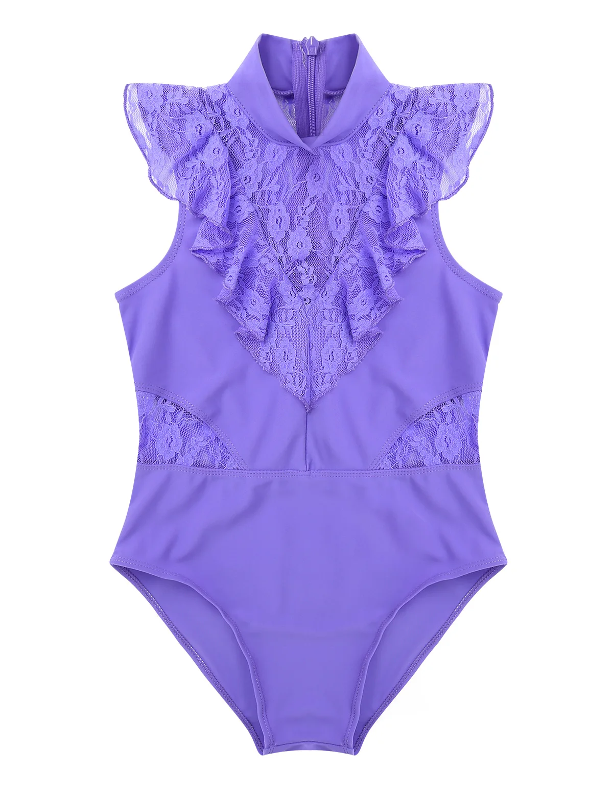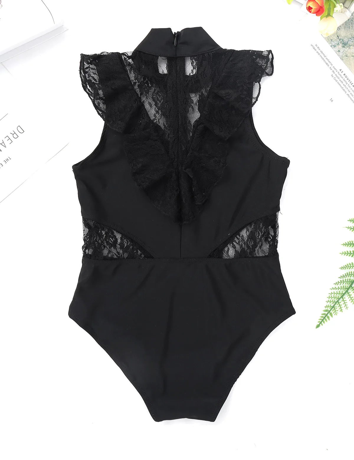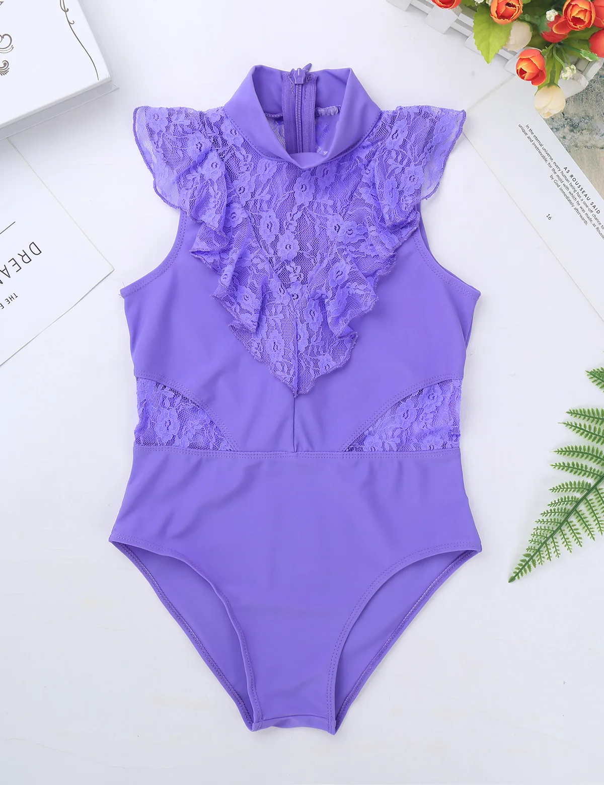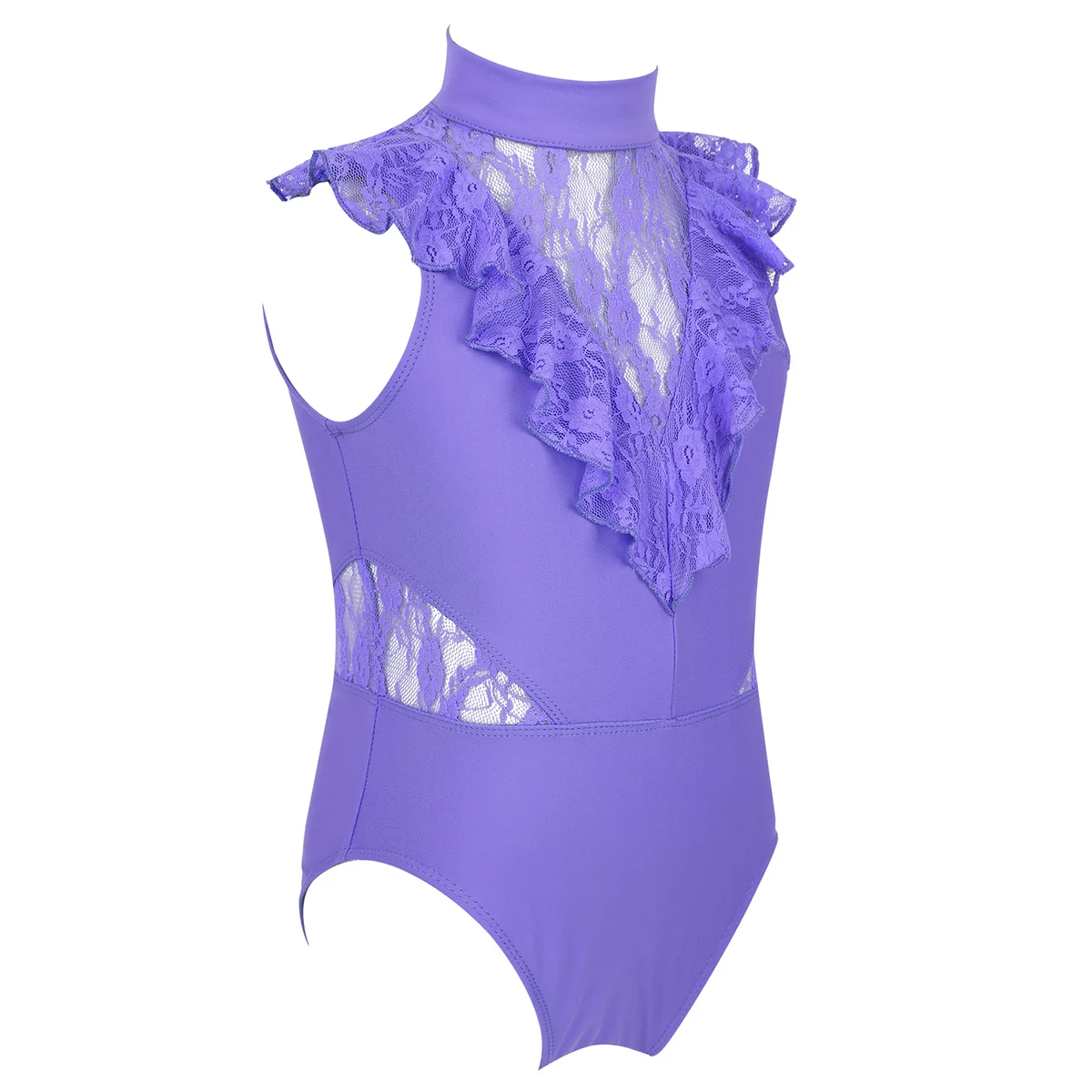 Балетное трико для девочек, без рукавов, с оборками и кружевом, с разрезом сзади, на молнии, балетное танцевальное гимнастическое трико, комбинезон, балетная пачка