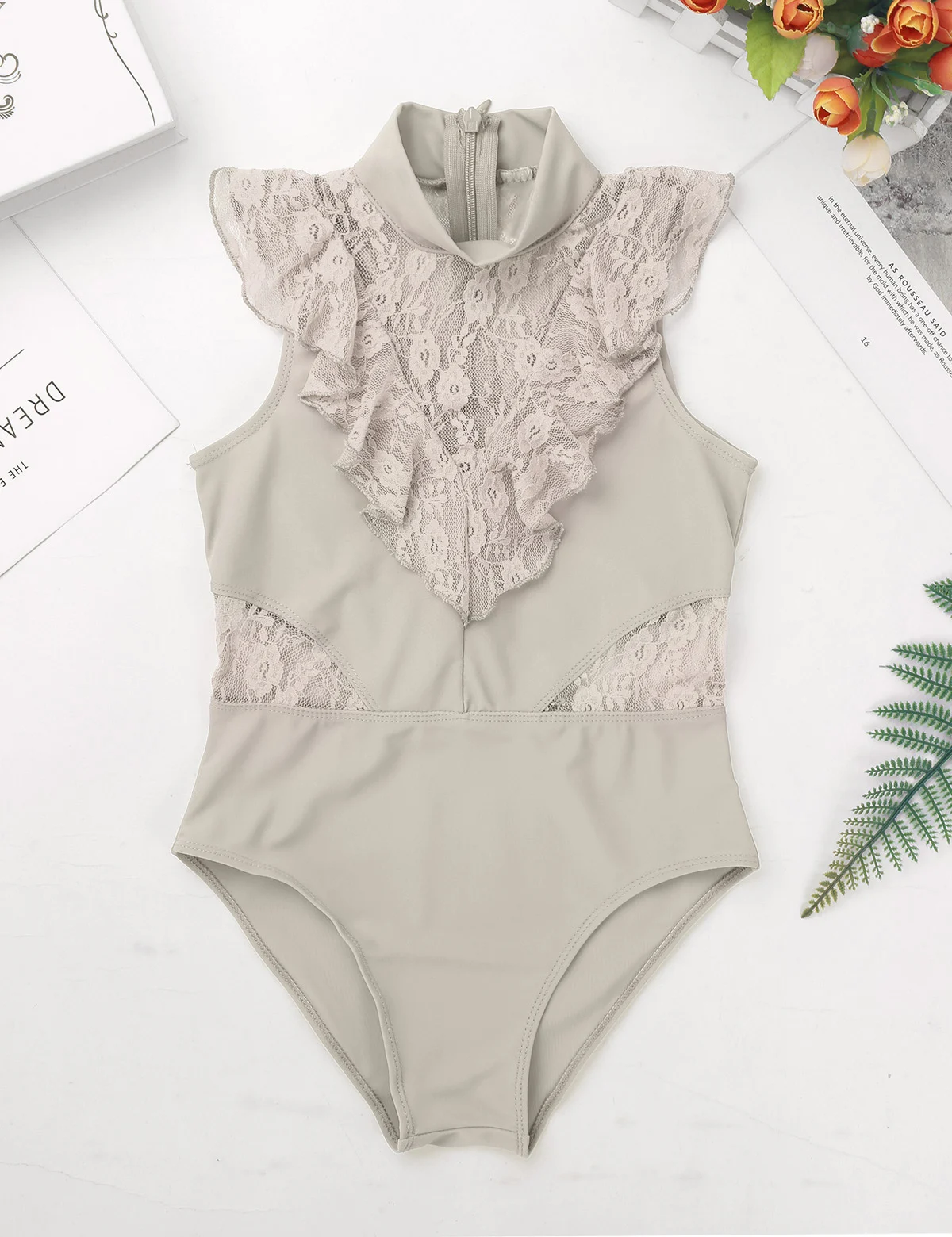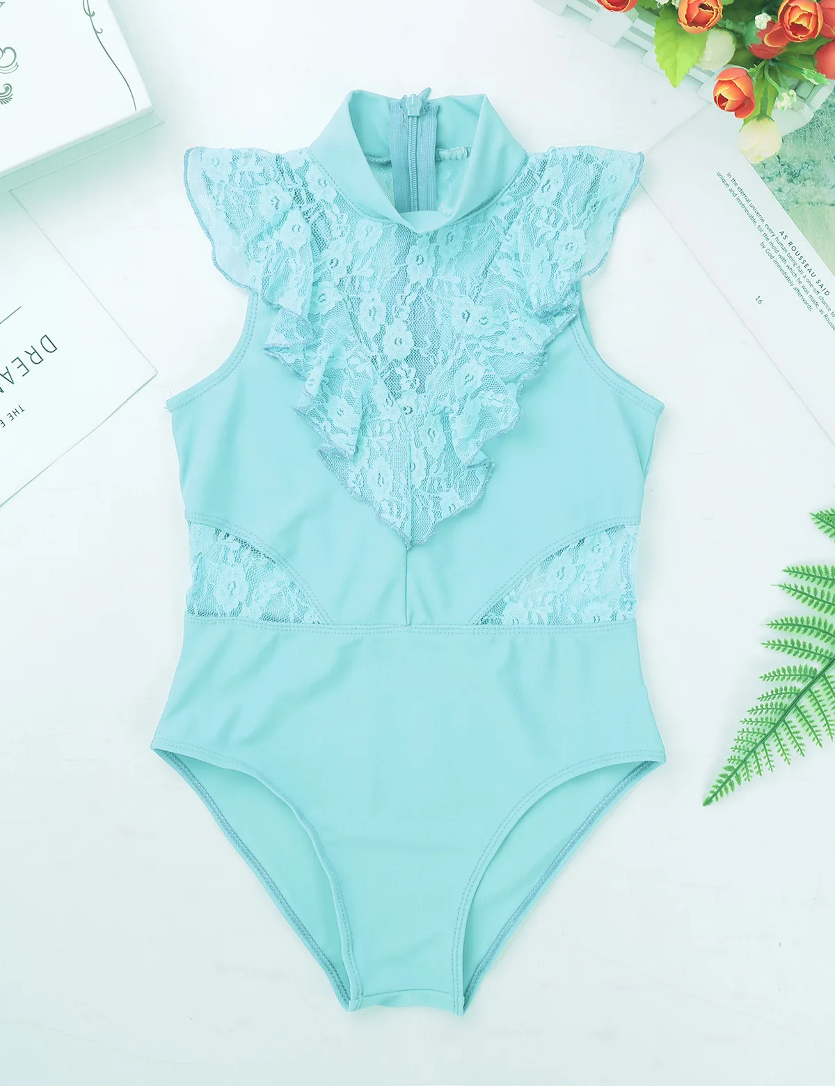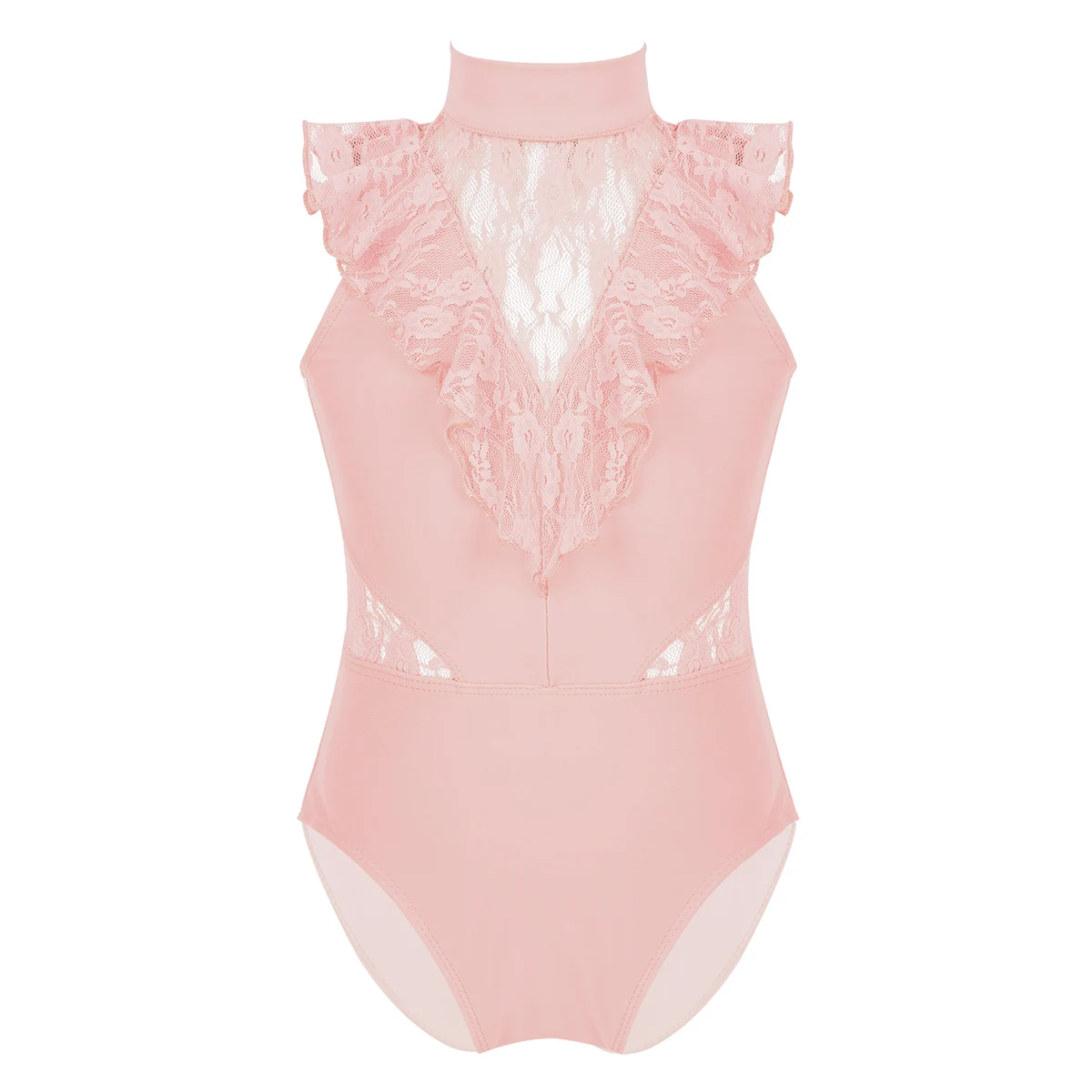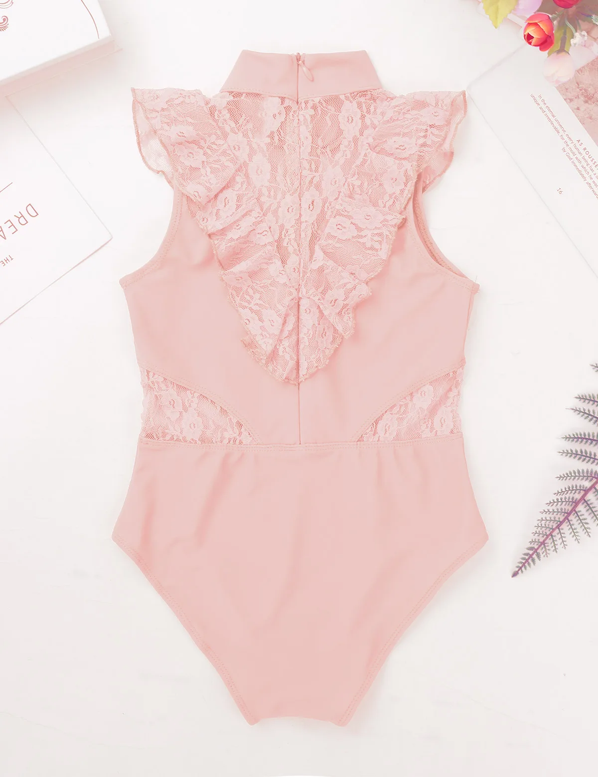 Балетное трико для девочек, без рукавов, с оборками и кружевом, с разрезом сзади, на молнии, балетное танцевальное гимнастическое трико, комбинезон, балетная пачка