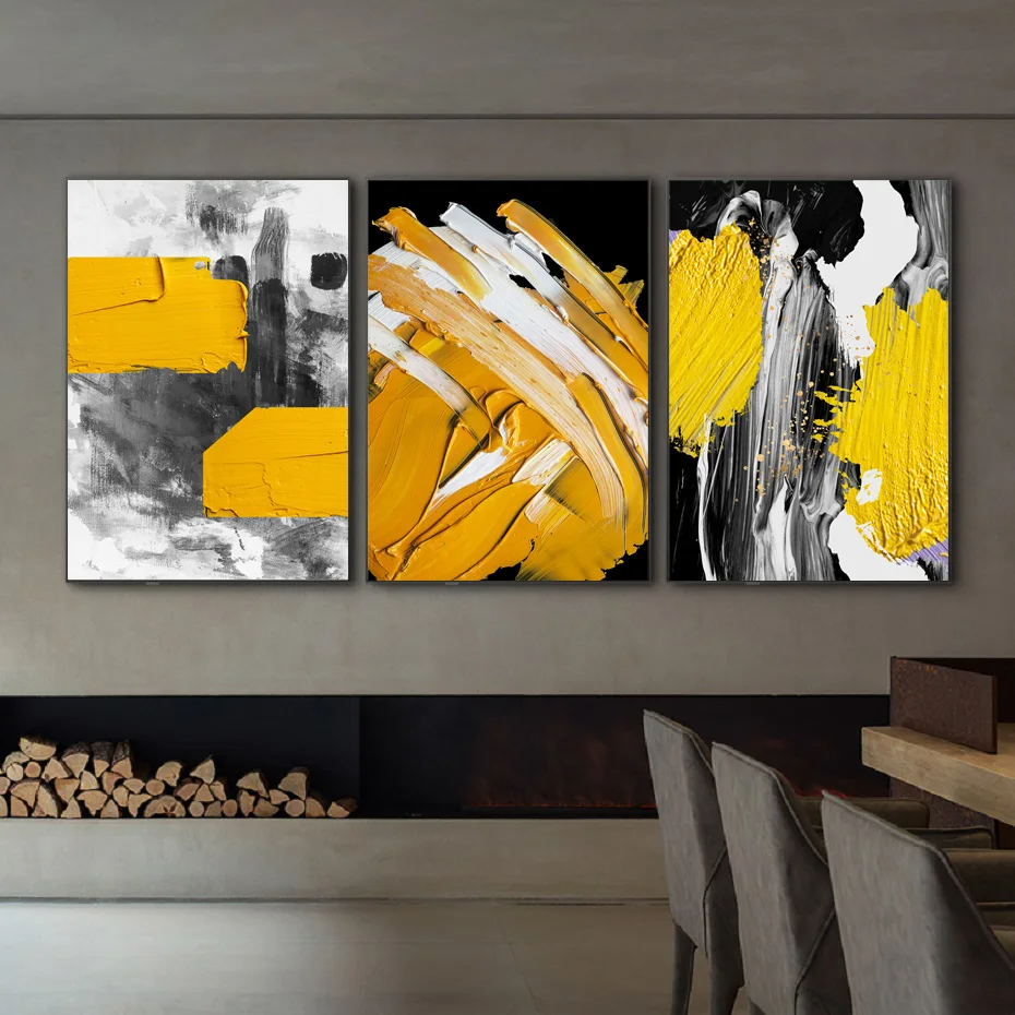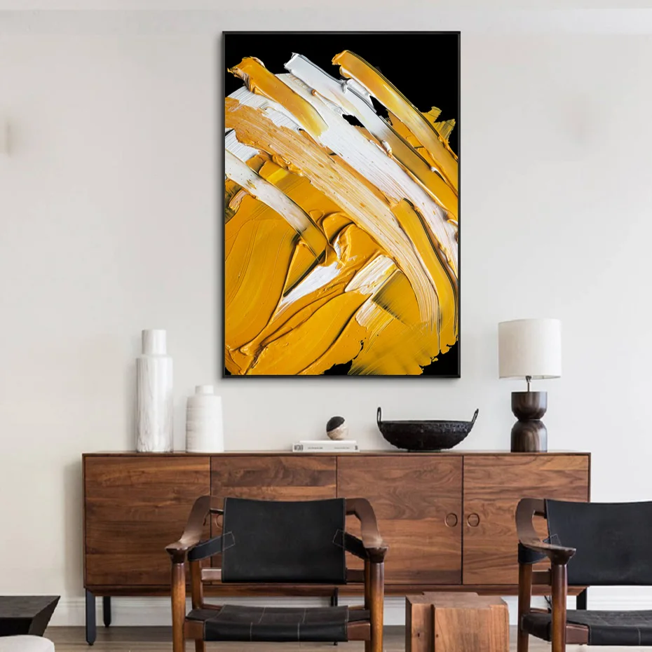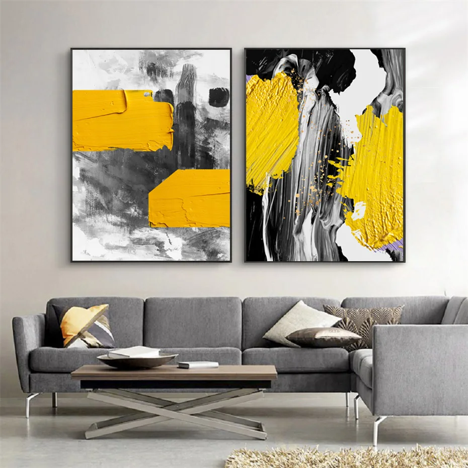 Абстрактная картина маслом черного и желтого цветов в скандинавском стиле, настенная живопись на холсте, настенные художественные принты и плакаты, домашний декор для гостиной