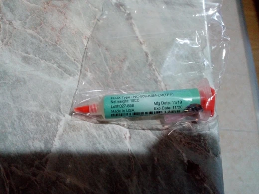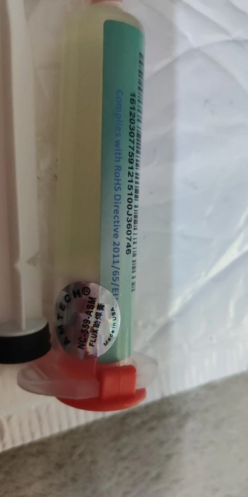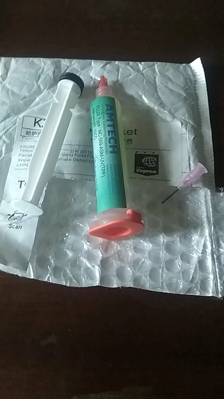 Белая жижа , вазелин , не имеющая отношения к amtech 559 , речи о пайке bga быть не может, так провода паять. Доставка около 50 дней.