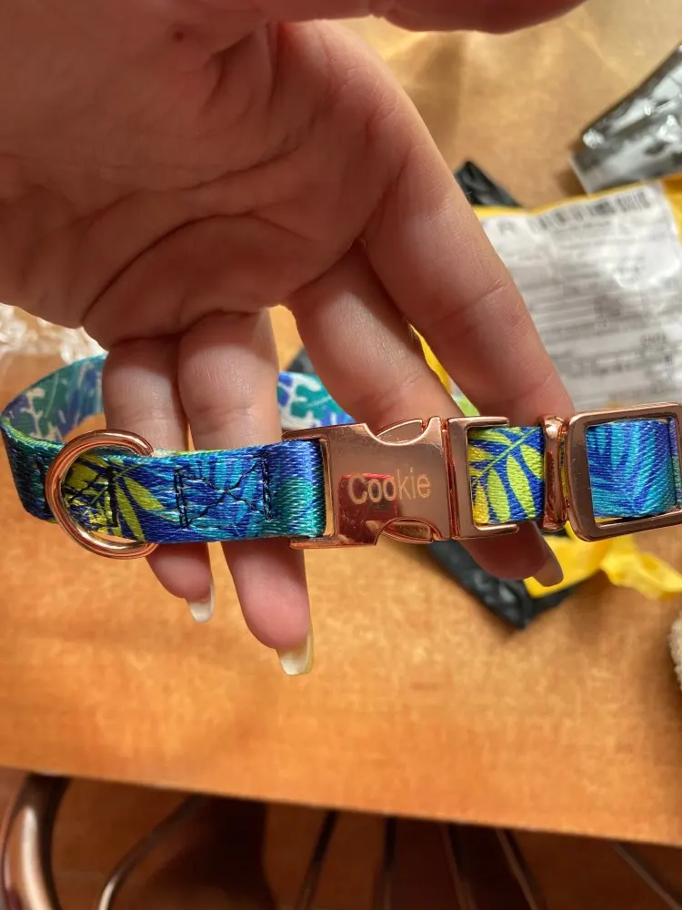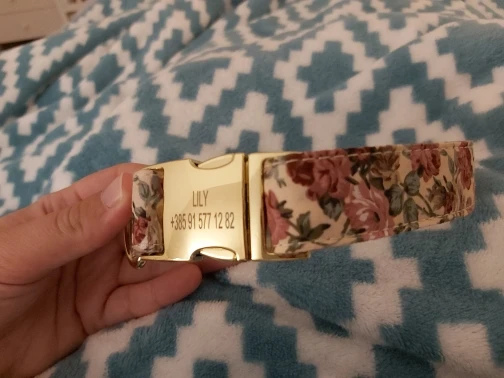 Красивое Ожерелье для моей маленькой суки. Красивая гравировка. Мне нравится. Отличное соотношение цены и качества. Может быть, он не прослужит так долго, но он стоит покупки, есть, и тогда я куплю другие.