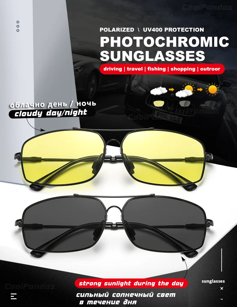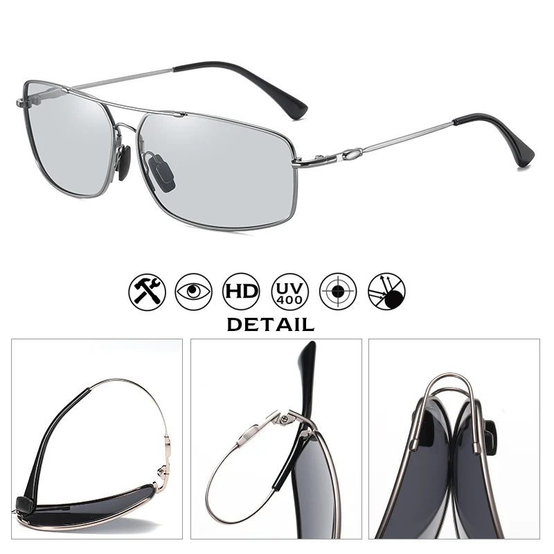 Очки солнцезащитные Мужские поляризационные с фотохромными линзами, в металлической оправе с эффектом памяти, для дневного и ночного вождения, 2020