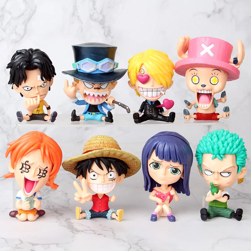 8 шт.лот цельный Ace Sabo детство Sanji Chopper Nami Luffy Roronoa Zoro Q сидящий Ver. Экшн-фигурка из ПВХ