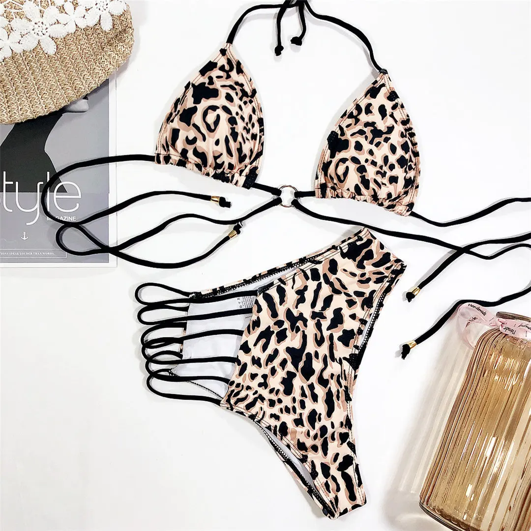 Новый леопардовый Асимметричный женский купальный костюм с высокой талией, бикини, женская одежда для плавания, комплект бикини из двух предметов, купальный костюм для купания V1810L
