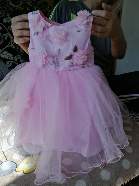 Замечательное платье ! Я заказала размер 9м-12 м=80р нам немного велико ( по бакам примерно 2'5см, но это вообще не проблема. Я вывернула платье подкладка по всем швам не пришита, это даже +. И прошила на машинке по строчке по бокам. Теперь идеально и на вырост хватит если нежно).Я хотела что бы платье было по длине поэтому заказала 80 р. У нас рос 74 (г.49; т 48.) На наш рост длинна не прозрачной юбки чуть ниже половины голени. + с верху фатин см 5. Юбка пушистая. Нитки почти не торчат. Смотрится очень хорошо. Сзади еть атласные ленты для банта, можно утянуть талию. Внутри подкладка хб что большой+ . Вообщем платье соответствует описанию. Я довольна, малышка тоже!