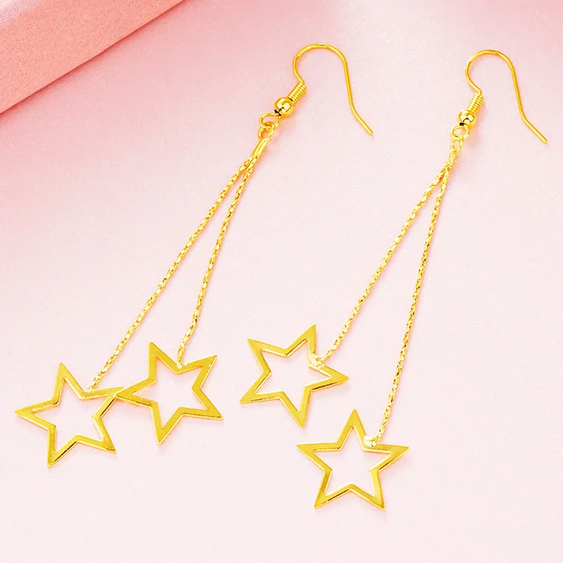 Серьги с натуральным золотом 24 К, серьги пентаграмма серьги с ниспадающими кисточками для женщин, свадебные украшения, бижутерия, индийская бижутерия