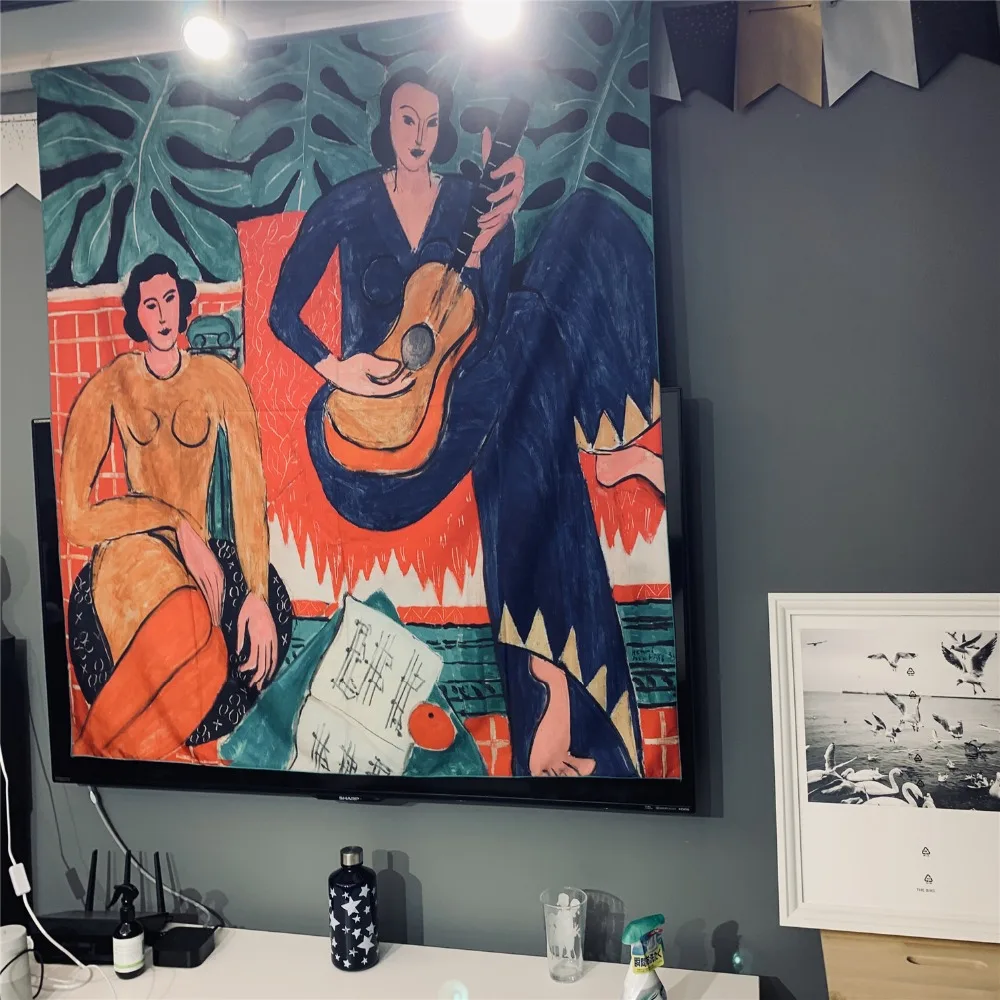 пришло капец как быстро!! обожаю эту картину, уже везде куда можно её впихнула. когда-нибудь дойдёт до того, что набью с ней тату. а ещё она заняла место очень стрёмной фотки, поэтому вдвойне спасибо!!! тоньше, чем я думала, но так даже удобнее. на ощупь как очень толстый платок. есть штучки, за которые гобелен можно на стену прицепить.