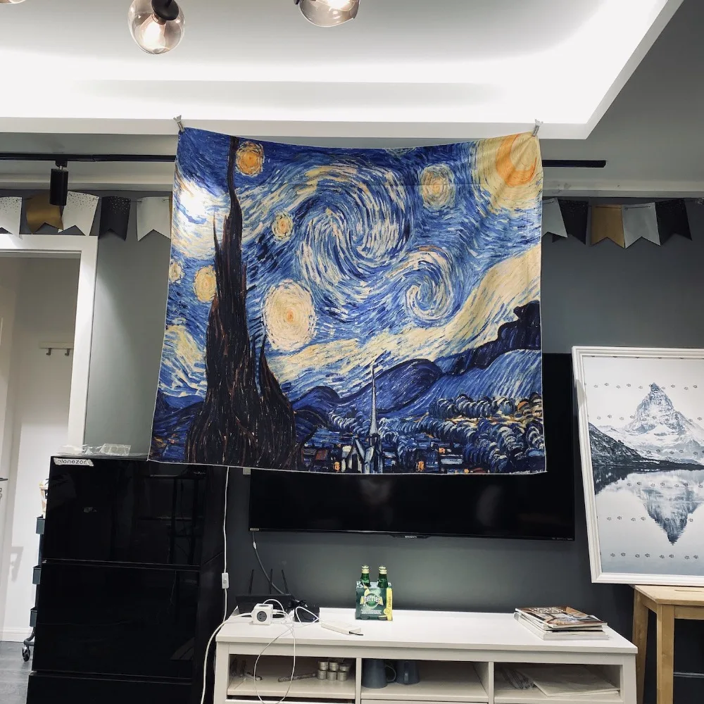 супер классный гобелен. но крепления дурацкие. нормально не вошли в стену. пришлось на булавки вешать