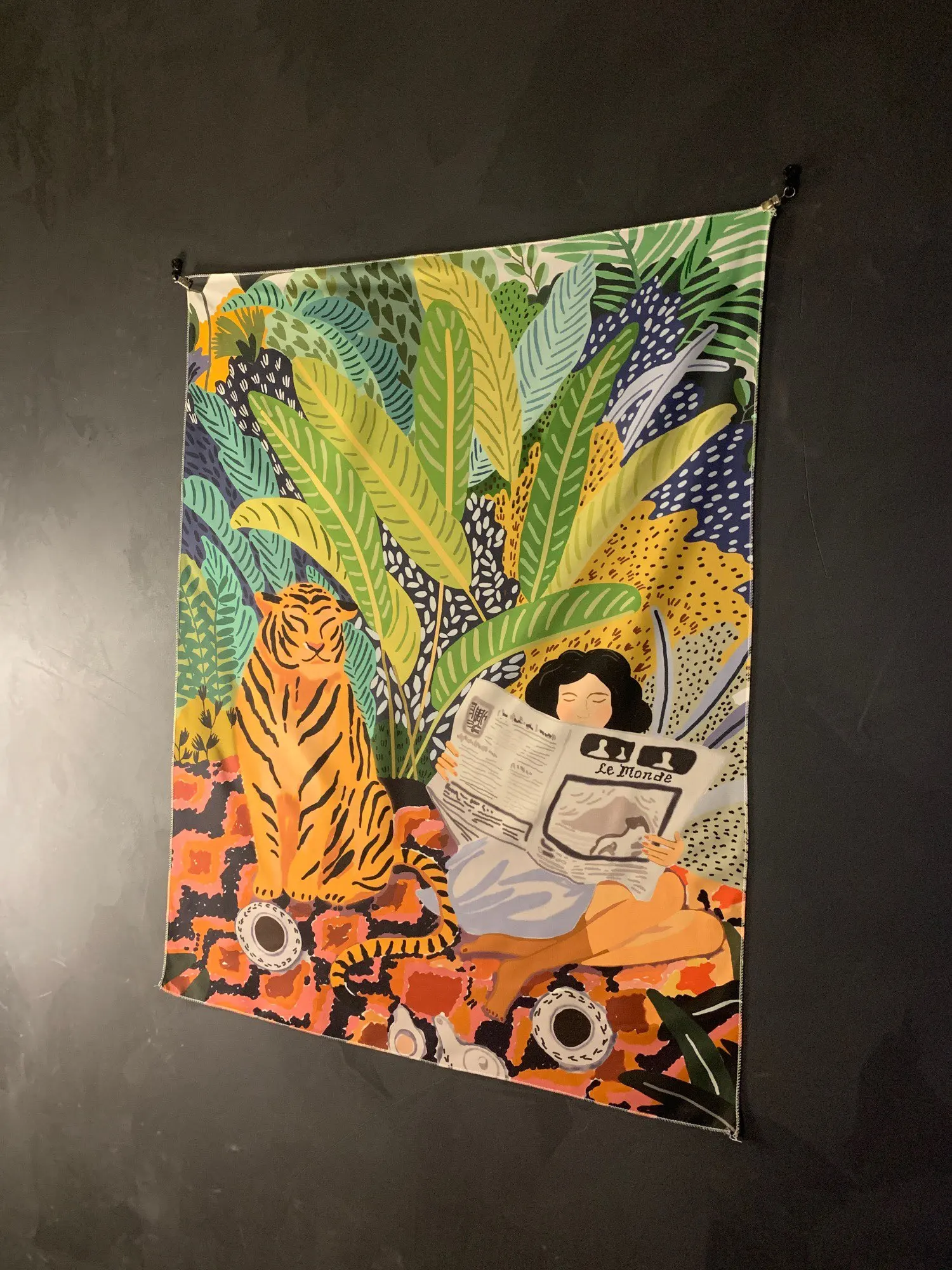 Это конечно не гобелен а настоящий платок синтетический но шелковистый. Если на раму натянуть будет интересно смотреться