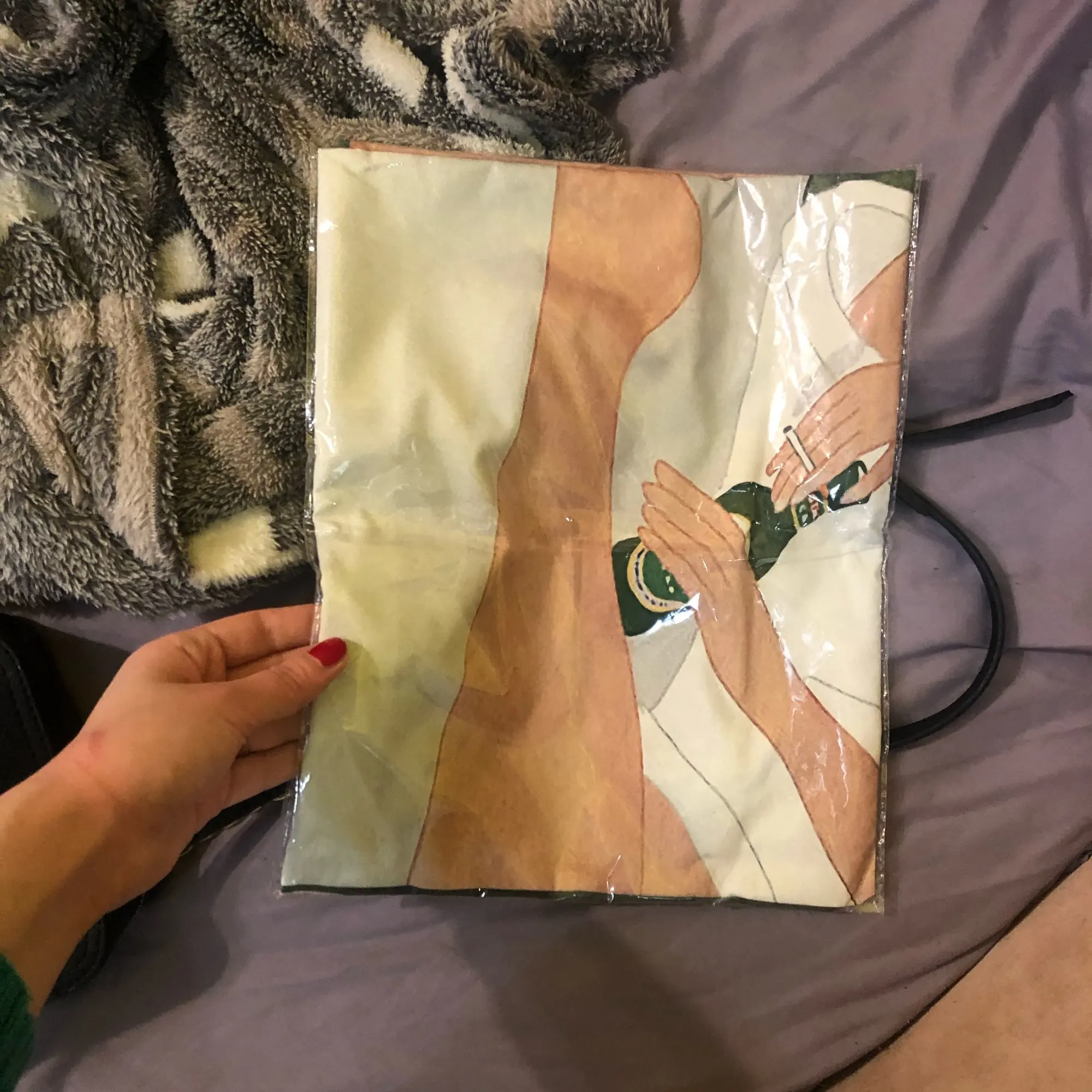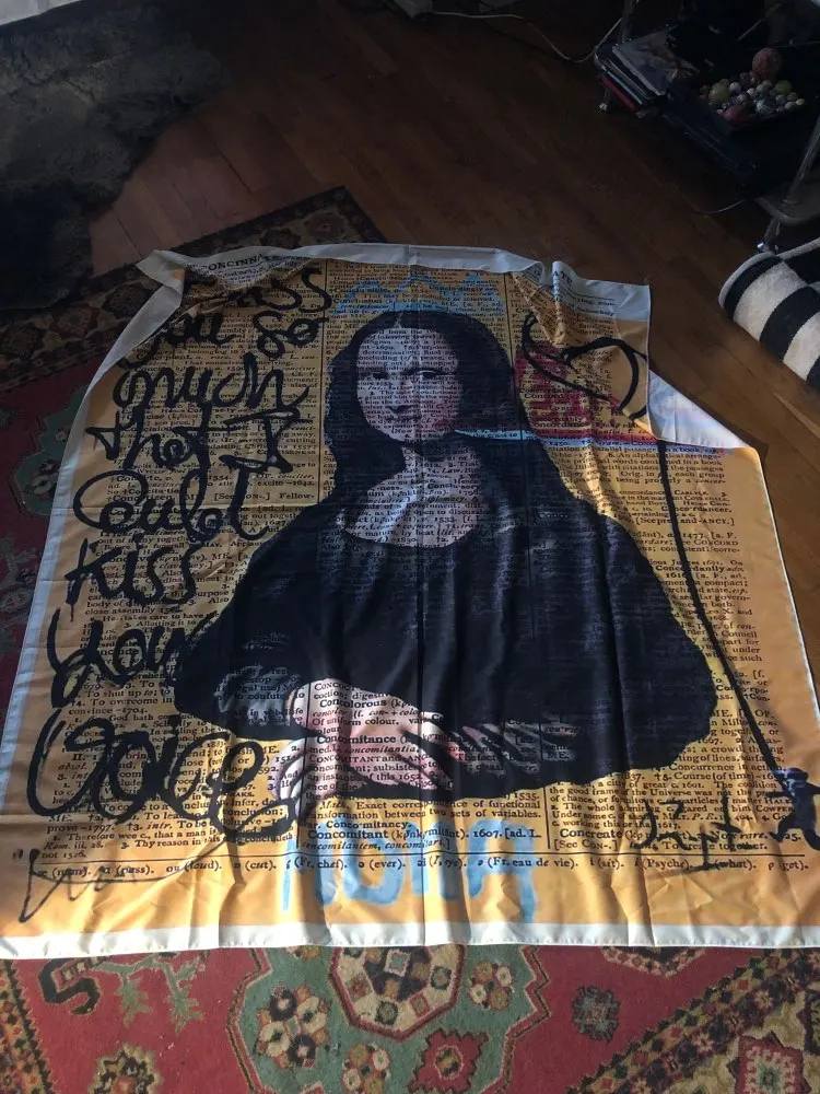 Я думала она будет как картина или плакат,а она из ткани. Может я не так что то тыкнула,не знаю. В целом без косяков и повреждений,мне нравится,но теперь вопрос,куда вешать это,она очень большая!!!!