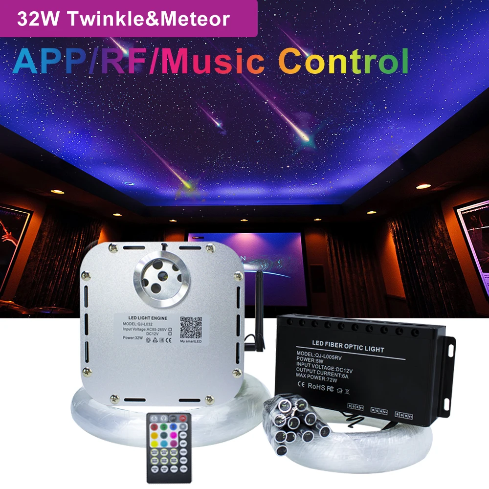 32 Вт RGB мерцающий волоконно-оптический светильник s Bluetooth с приложением управления звезда потолочный светильник наборы 800 шт * 0,75 мм * 4 м со съемкой метеоритный эффект