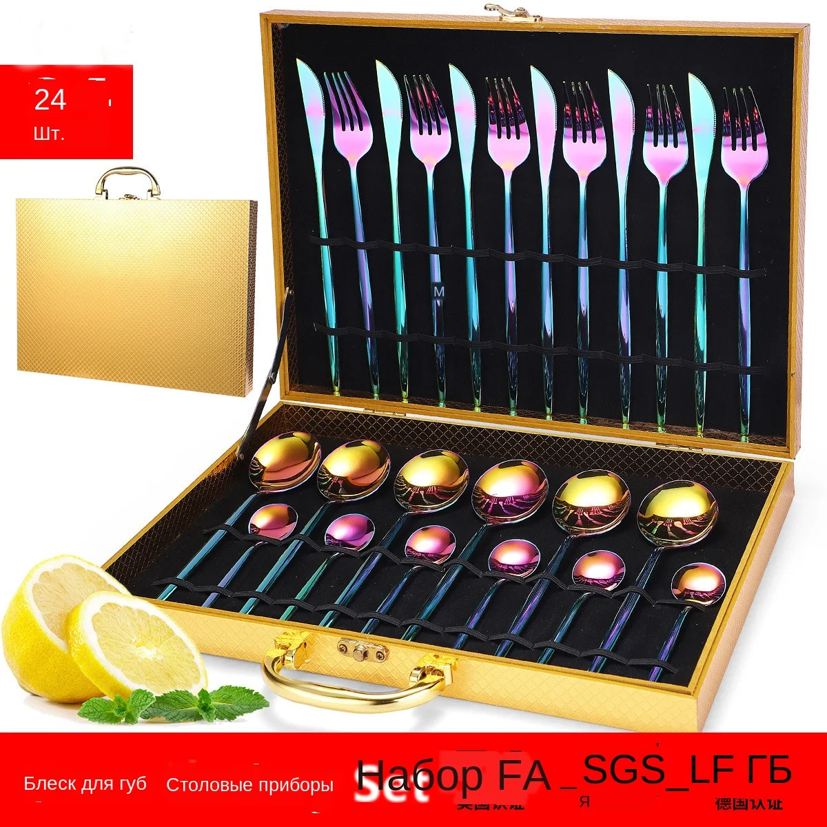 Набор золотых столовых приборов, нож для стейка, вилка, кофейная ложка чайной ложки, 24 шт.комплект, домашний столовый нож из нержавеющей стали, набор вилок, ложек