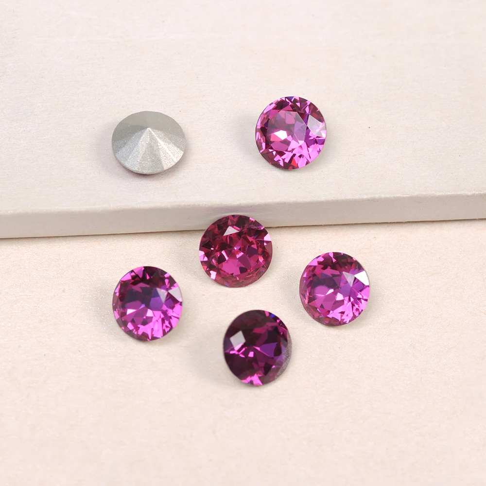 CTPA3bI Блестящий стеклянный кристалл цвета фуксии, пришивной камен...