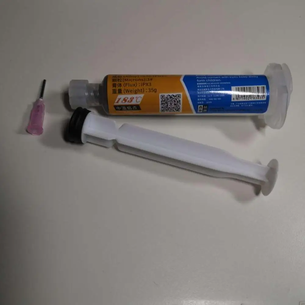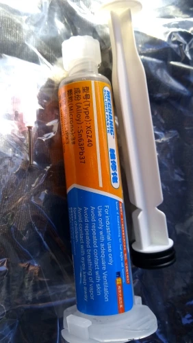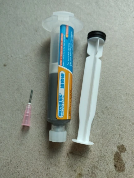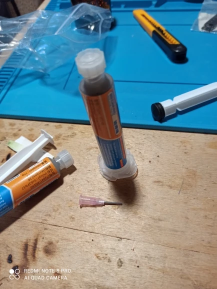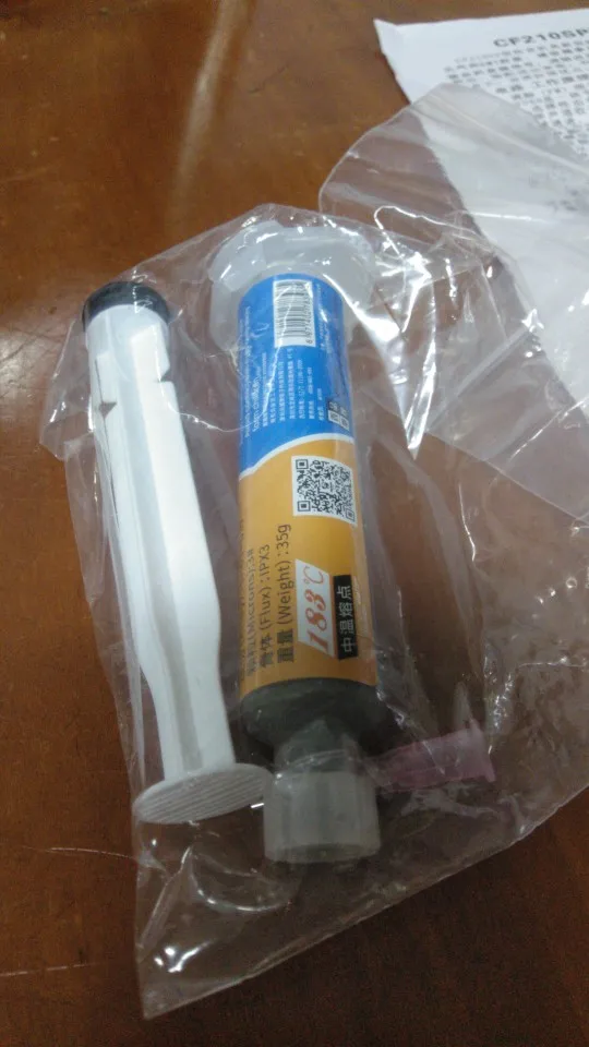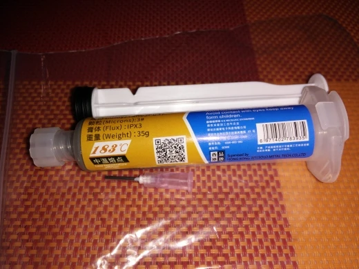 Флюс припой норм, попробовал паяльником и все плавится в олово с остатком флюса на поверхности, в шприце половина только, 300 рублей с доставкой как-то дороговато но хоть спасибо за то что работает нормально