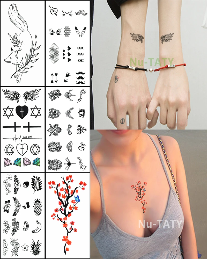 Водостойкая Временная наклейка Nu-TATY, белая лиса, цветение сливы, дерево, тату на палец, тело, руки, мужские временные тату-наклейки