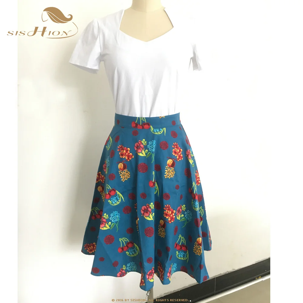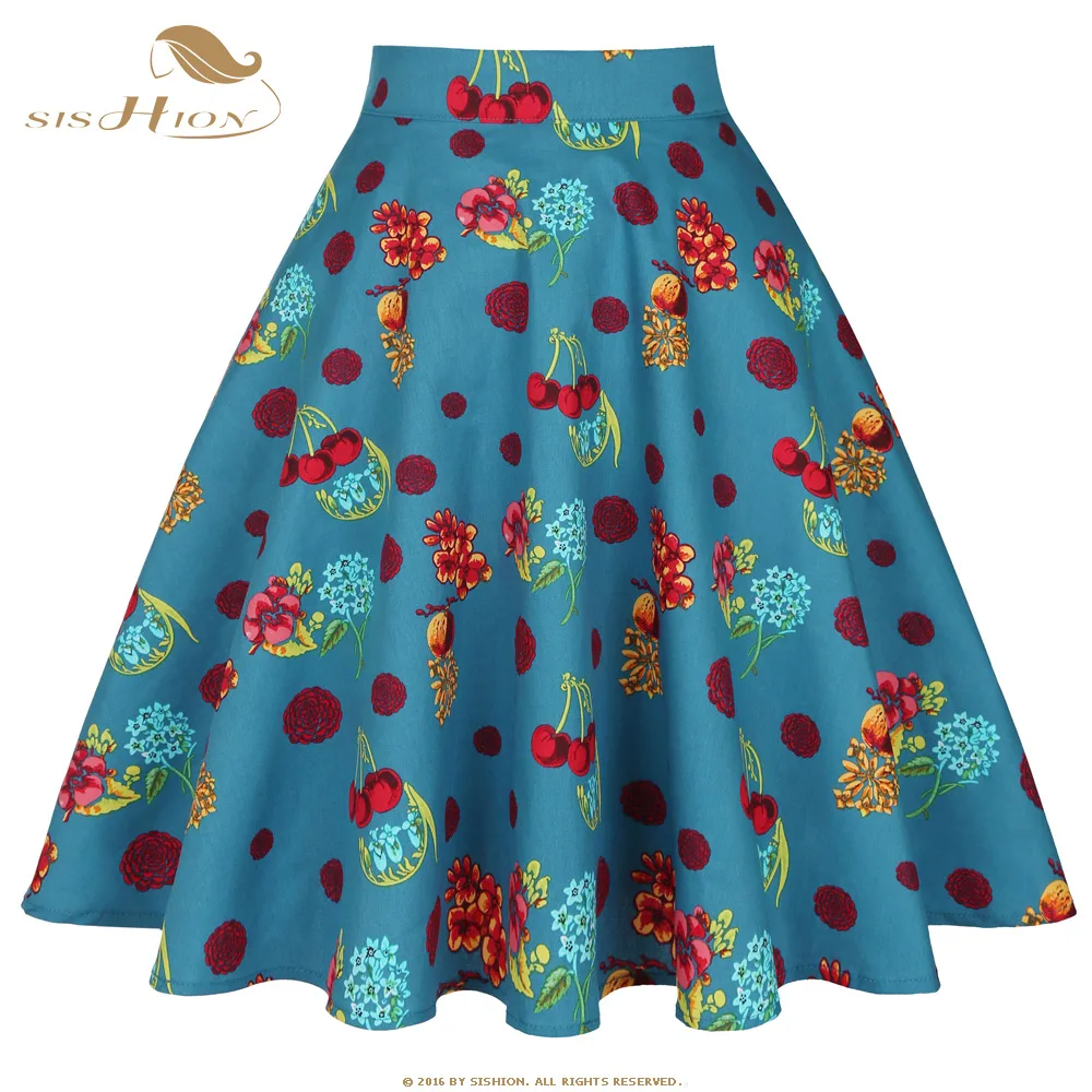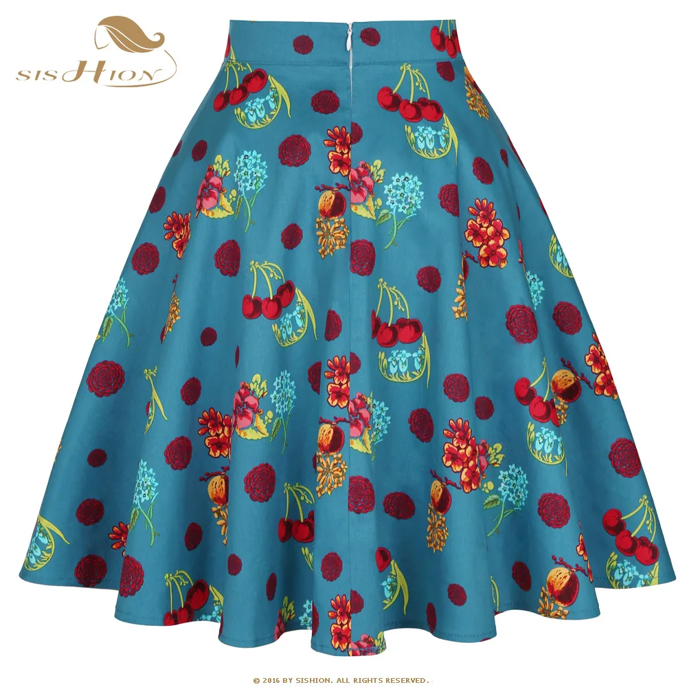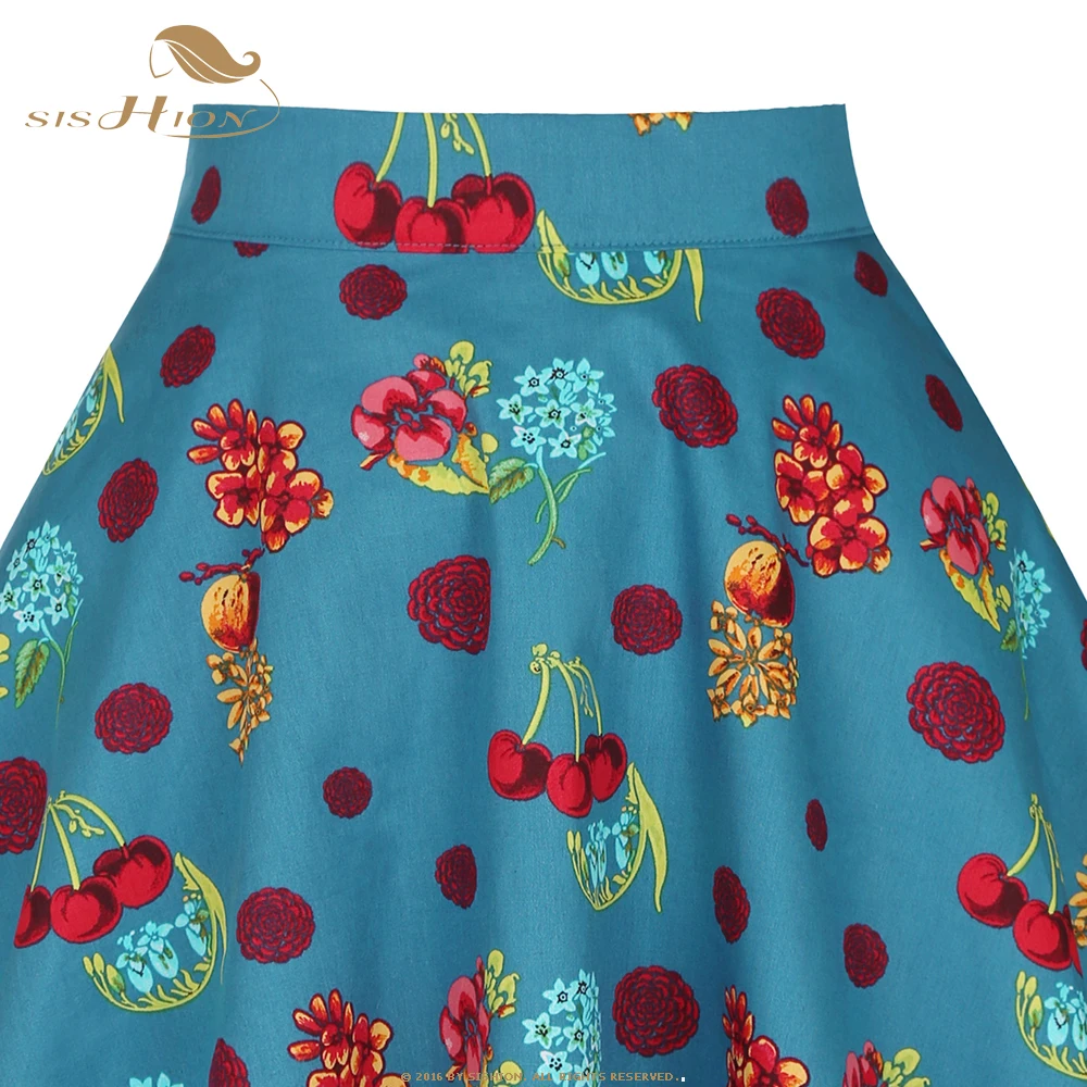Женская хлопковая юбка SISHION, винтажная Расклешенная юбка с цветочным принтом в стиле ретро 50-х 60-х, VD0020, летняя юбка с высокой талией, 2021