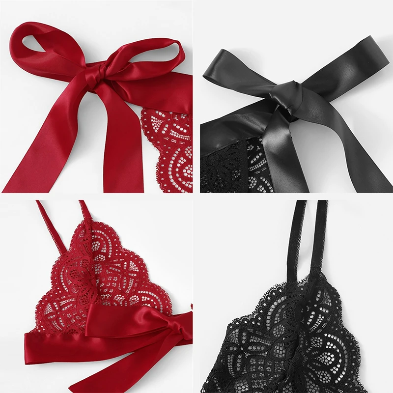 Нижнее белье, сексуальный комплект, Женская кружевная Пижама с бант...
