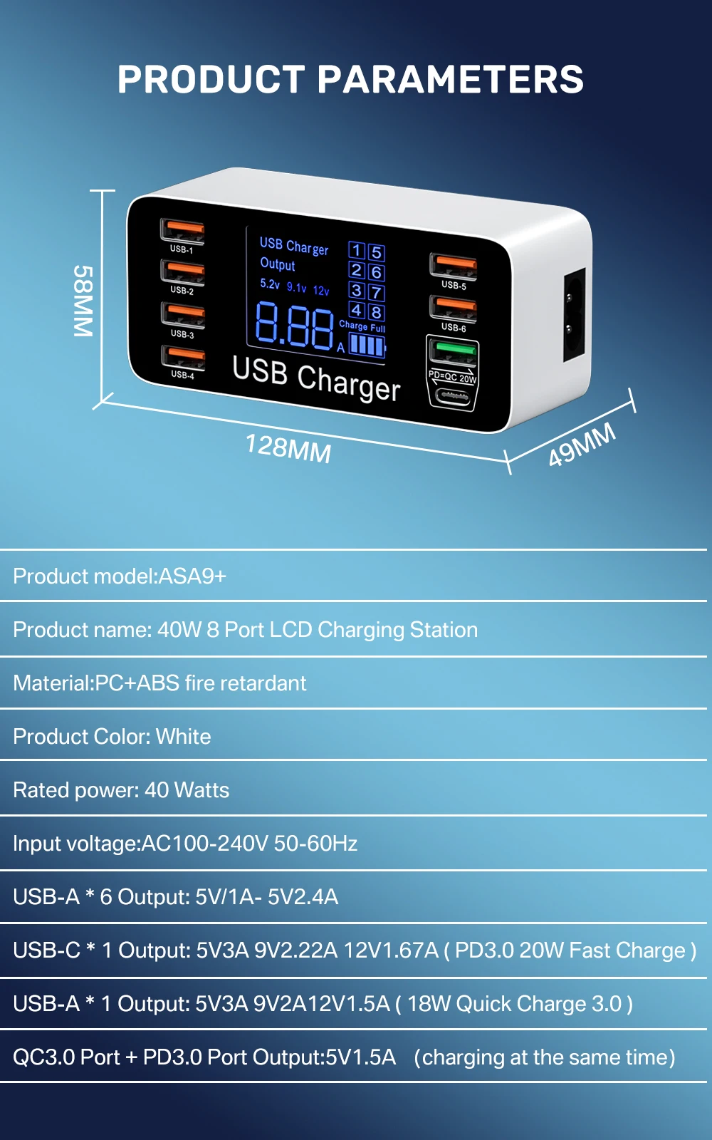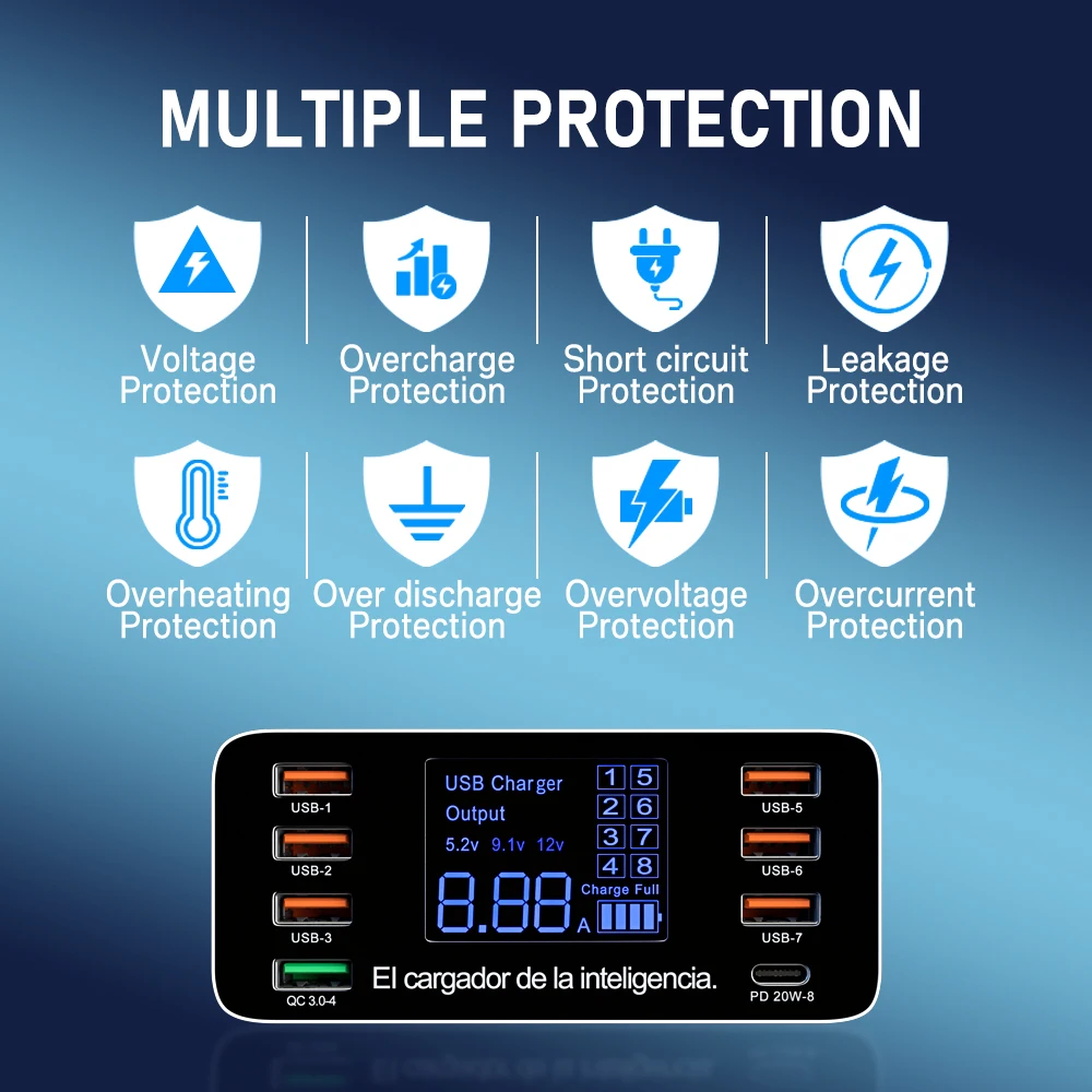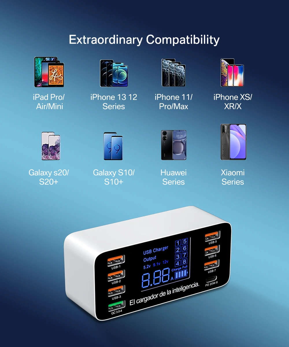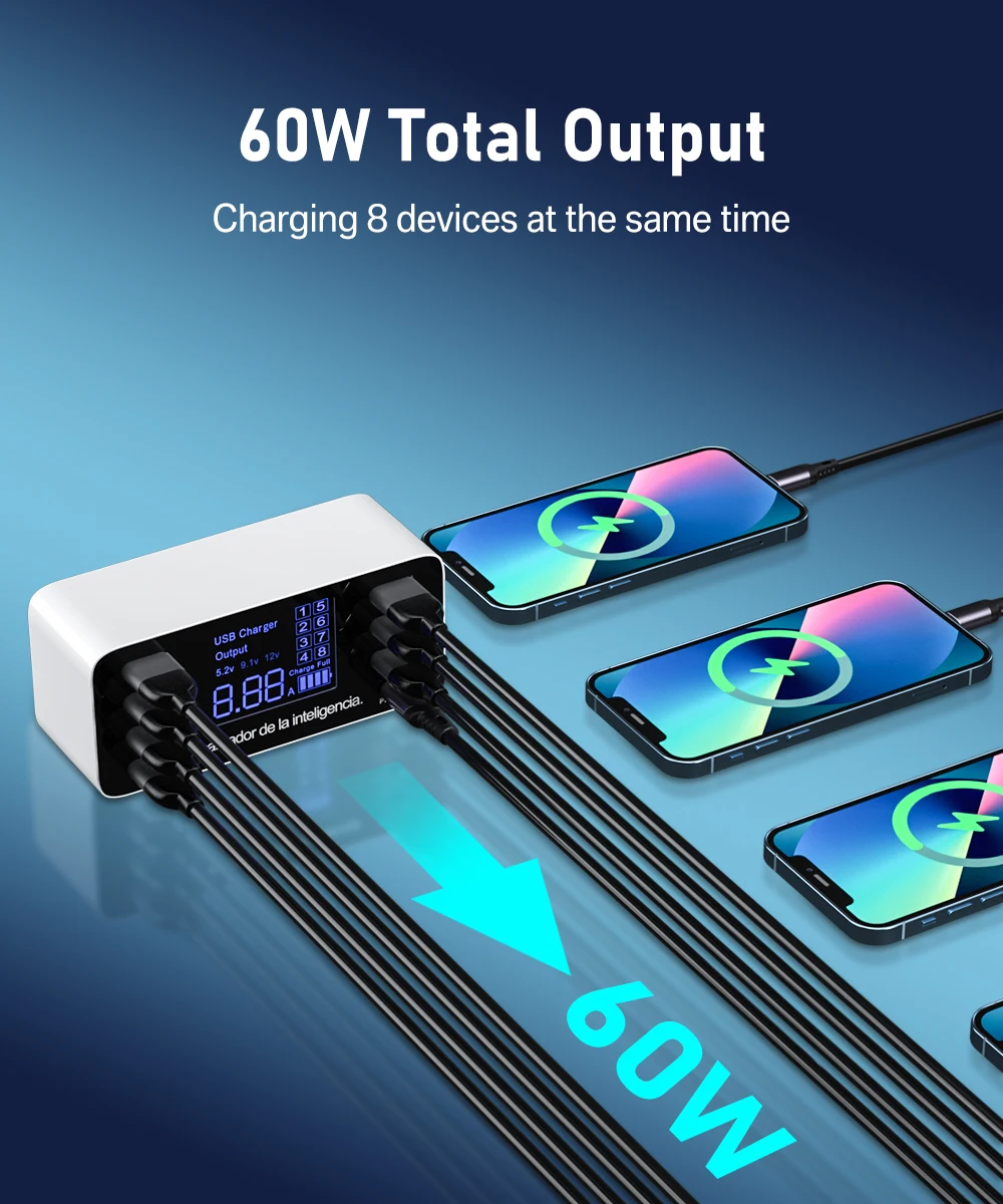 Зарядное устройство с 8 USB-портами и ЖК-дисплеем