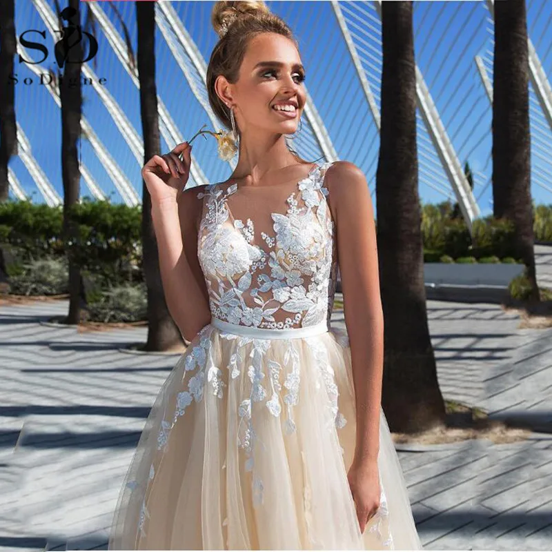 Женское свадебное платье со съемным шлейфом SoDigne, длинное кружев...
