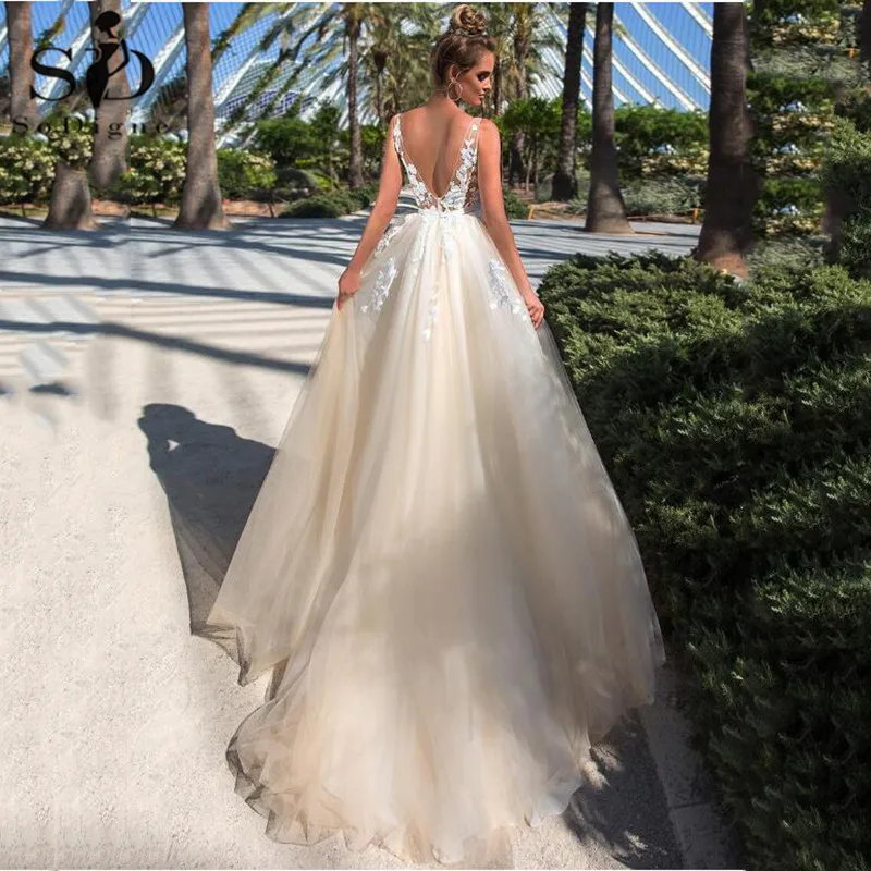 Сексуальные пляжные свадебные платья с открытой спиной 2021, v-обра...
