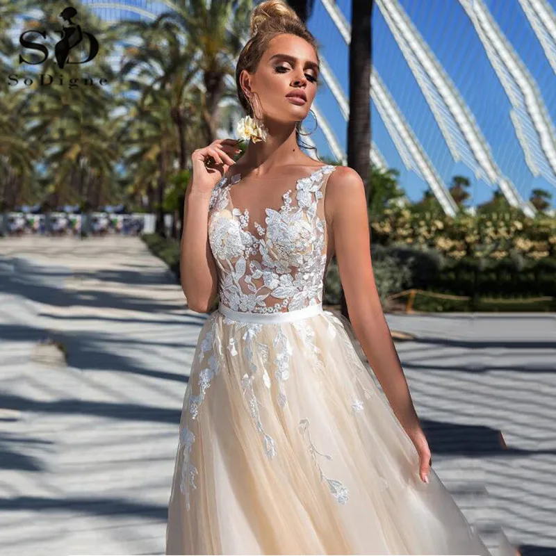 SoDigne Boho мягкое атласное свадебное платье из органзы, простое м...