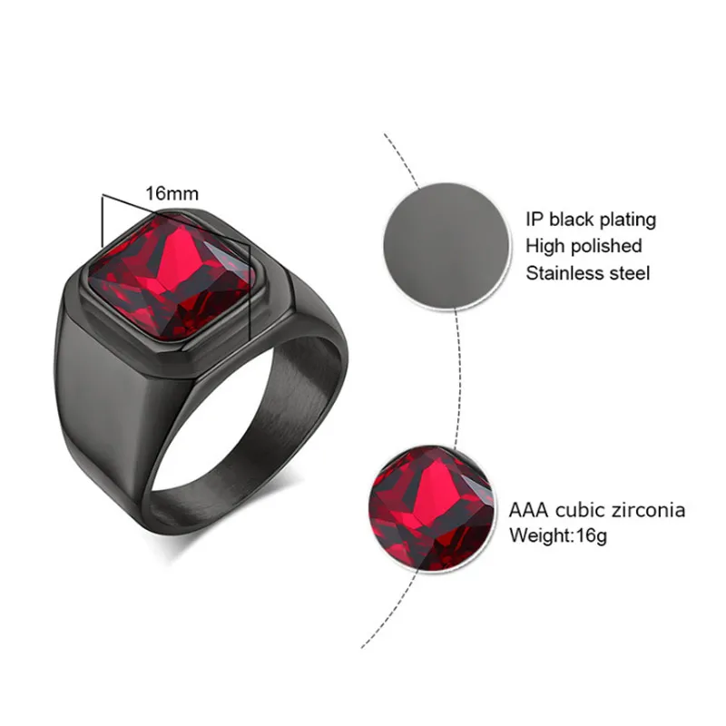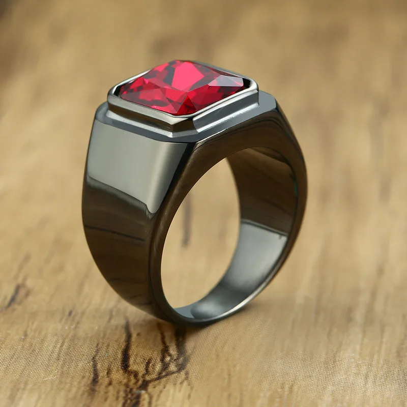ZORCVENS Vantage Черный Нержавеющая сталь Мужская печатка кольцо квадратный красный камень циркон вечерние бренды Модные мужские классические ювелирные изделия