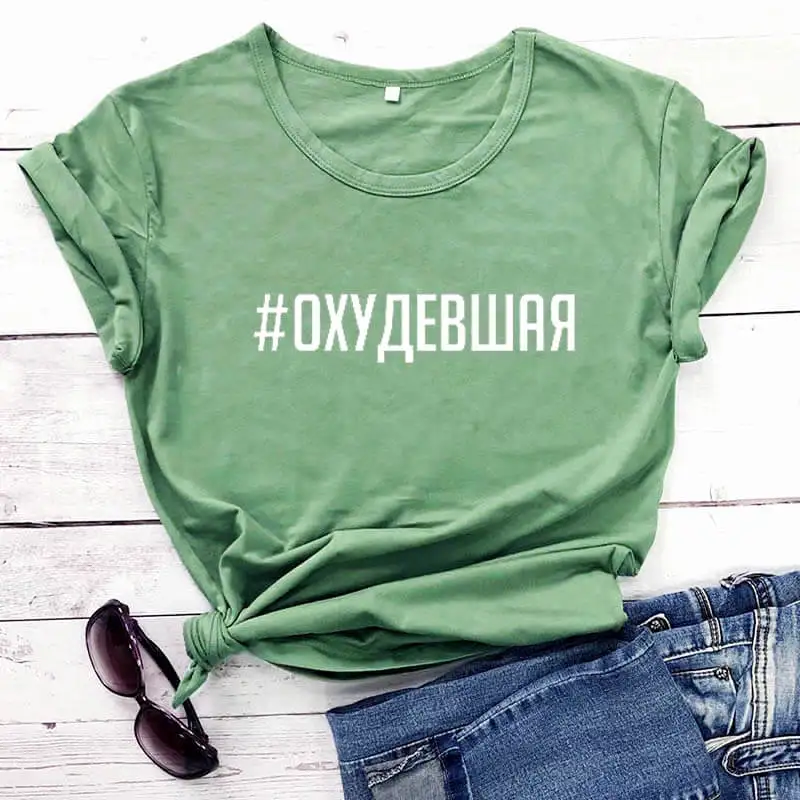 #охудевшая русскими буквами Новое поступление женские забавные повседневные рубашки из 100% хлопка женский милый пуловер футболка