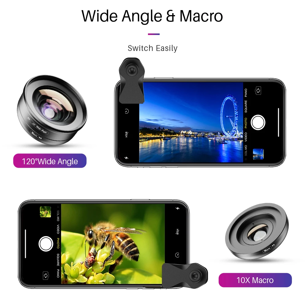 Объектив APEXEL HD 2 в 1 10X с супер макросъемкой и углом поворота 120 градусов для мобильных телефонов iPhone Xiaomi Samsung всех смартфонов