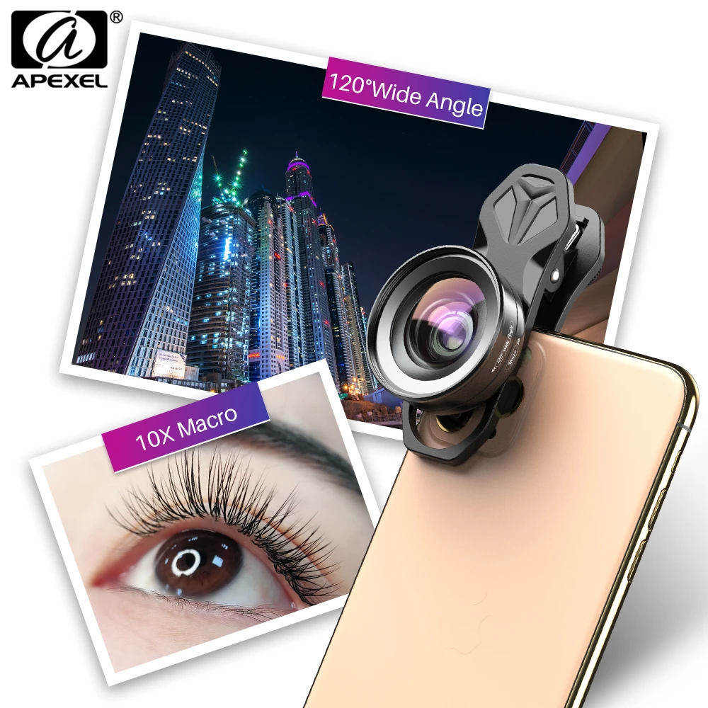 APEXEL HD 2 в 1 объектив для камеры 4K 120 градусов Супер Широкоугольный 10x макрообъектив для iPhone Samsung xiaomi Realme весь мобильный телефон