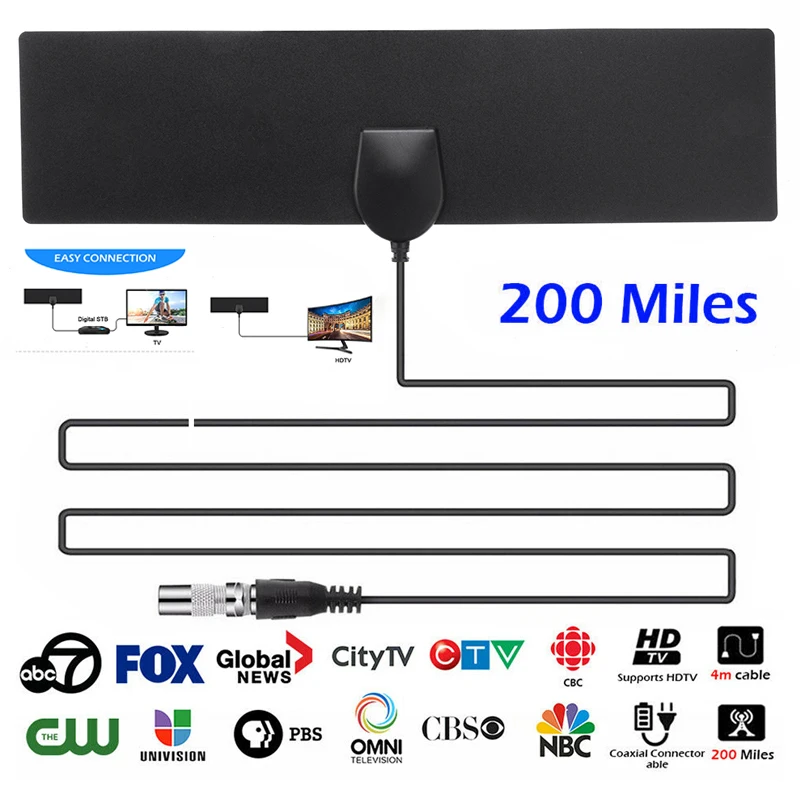 Портативная 200 миль HD TV цифровая ТВ антенна с усилением в помещении прямоугольная 1080P HD комнатная антенна ТВ цифровая Skywire 4K антенна