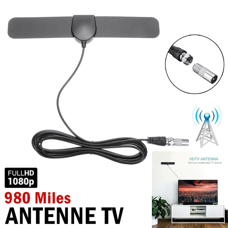 980 миля комнатная цифровая ТВ Мини тонкая антенна 1080P HD ТВ усилитель сигнала 980 миля цифровая антенна ТВ усилитель для закрытых помещений сигнал
